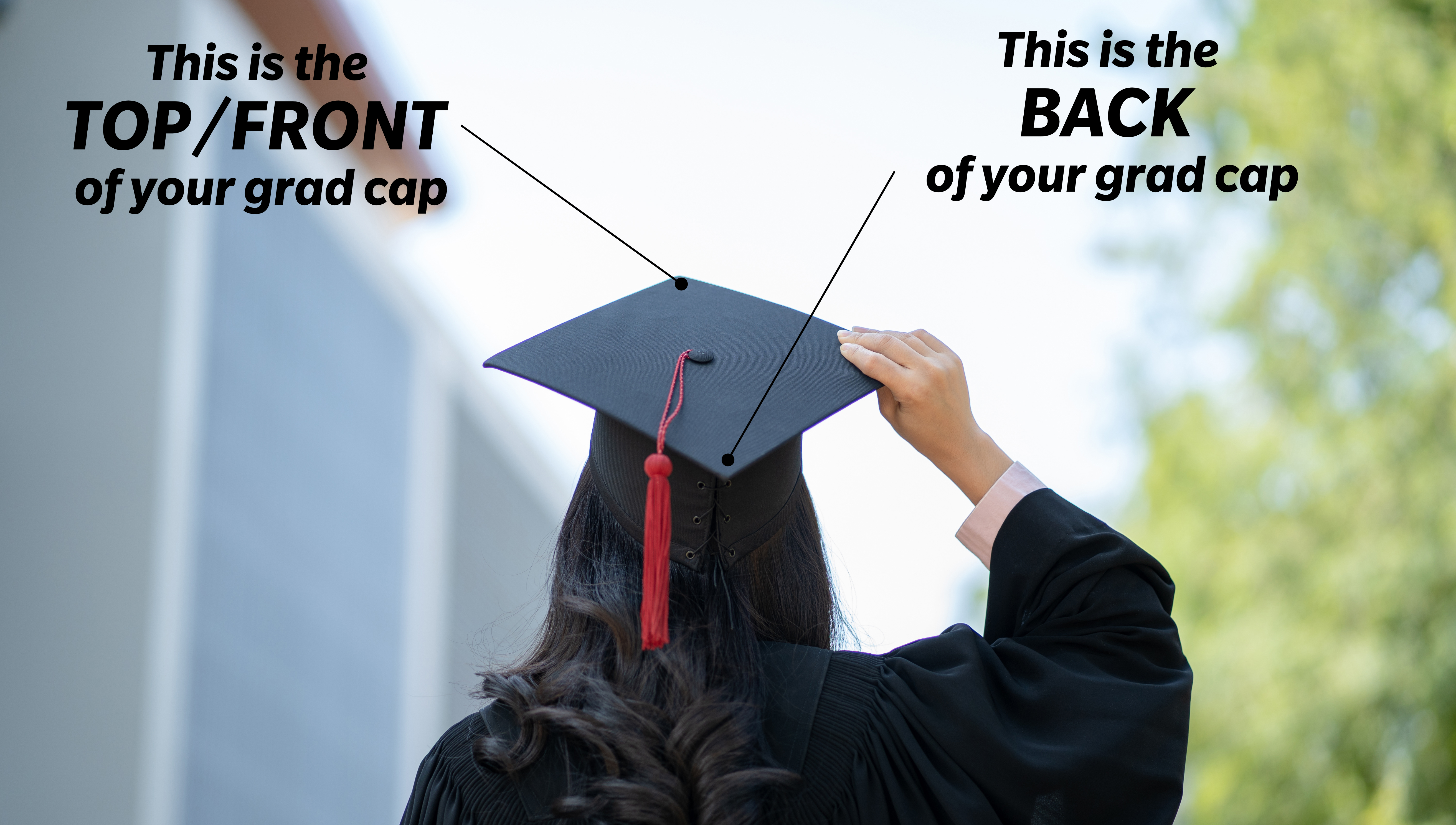 - Find the TOP/FRONT of your graduation cap so you know for reference