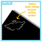 By adding this to your order, you are indicating you want one or more halo and angel wings on your design. In the space provided, please let me know the color you want the it and where you would like for them to be placed. Select the number of you'd like to add.