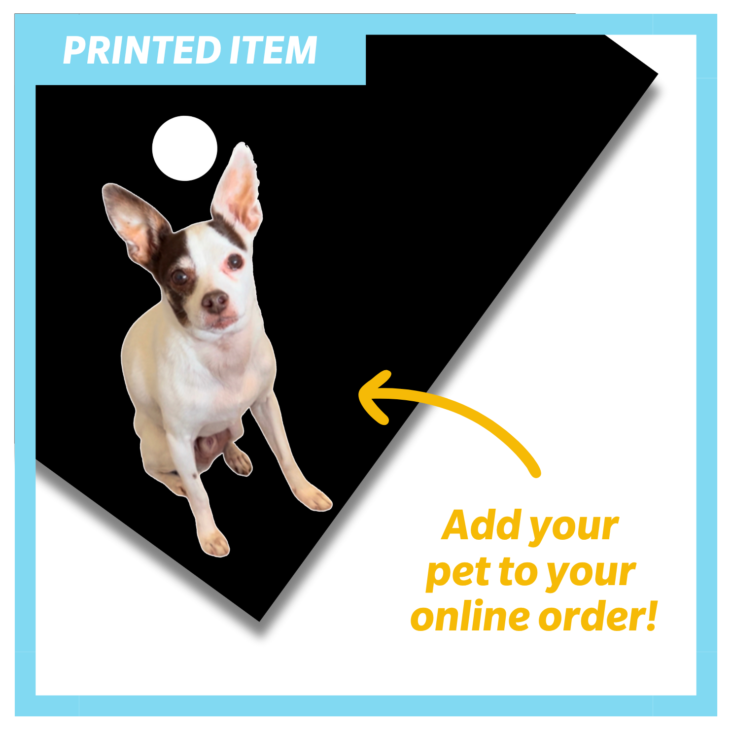 By adding this to your order, you are indicating you want one or more pets on your design. In the space provided, please let me know the style you want the photo and where you would like for them to be placed. Select the number of pets you'd like to add. You can upload your photos directly to this listing.