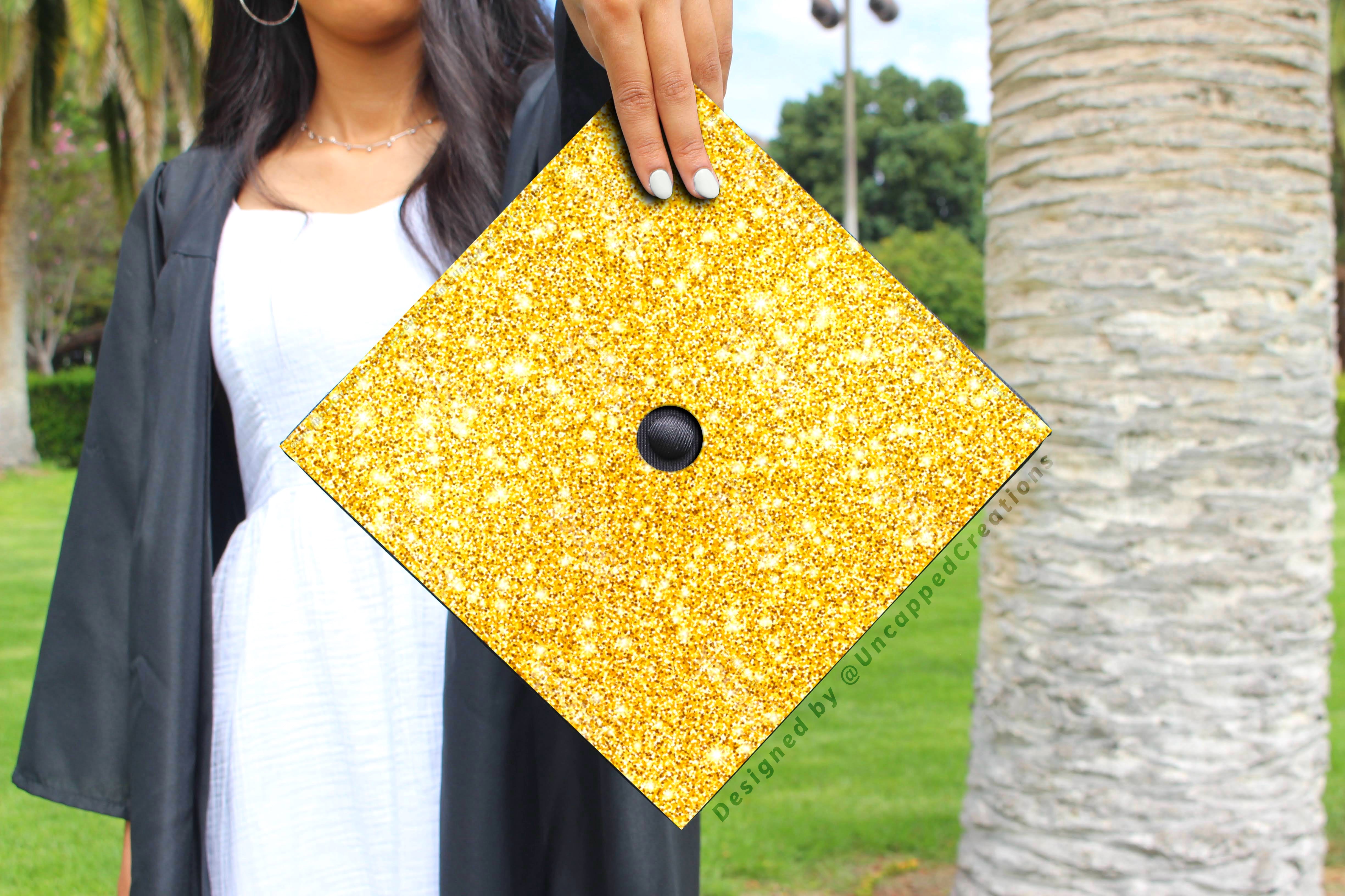 Design is 9.5 x 9.5 inches with an approximate 1 inch hole in the center and double sided adhesive in the back. Design is hand cut on cardstock paper. The topper will fit the standard 9 x 9 inches graduation cap / mortar board. Cap is not included.