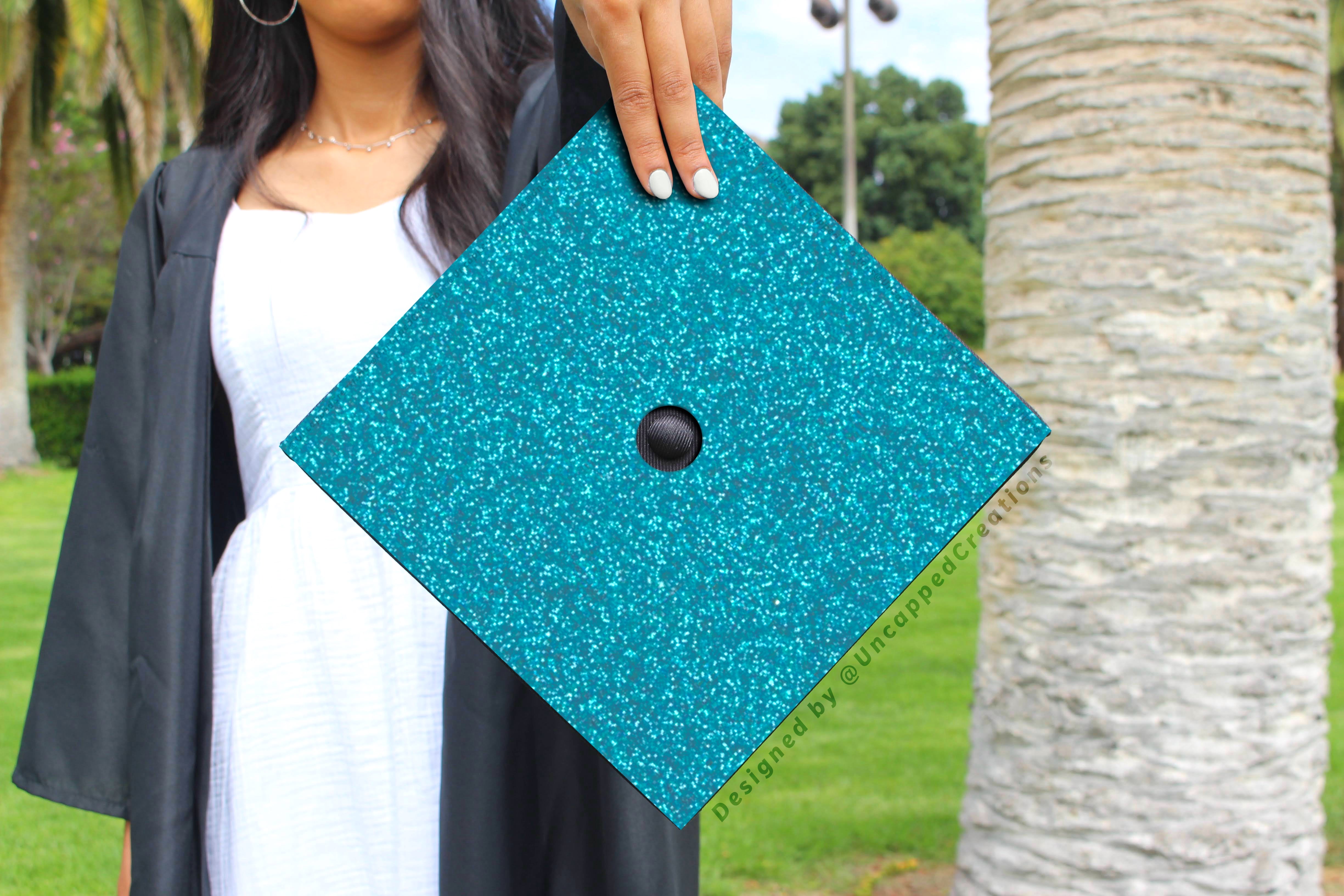 Design is 9.5 x 9.5 inches with an approximate 1 inch hole in the center and double sided adhesive in the back. Design is hand cut on cardstock paper. The topper will fit the standard 9 x 9 inches graduation cap / mortar board. Cap is not included.
