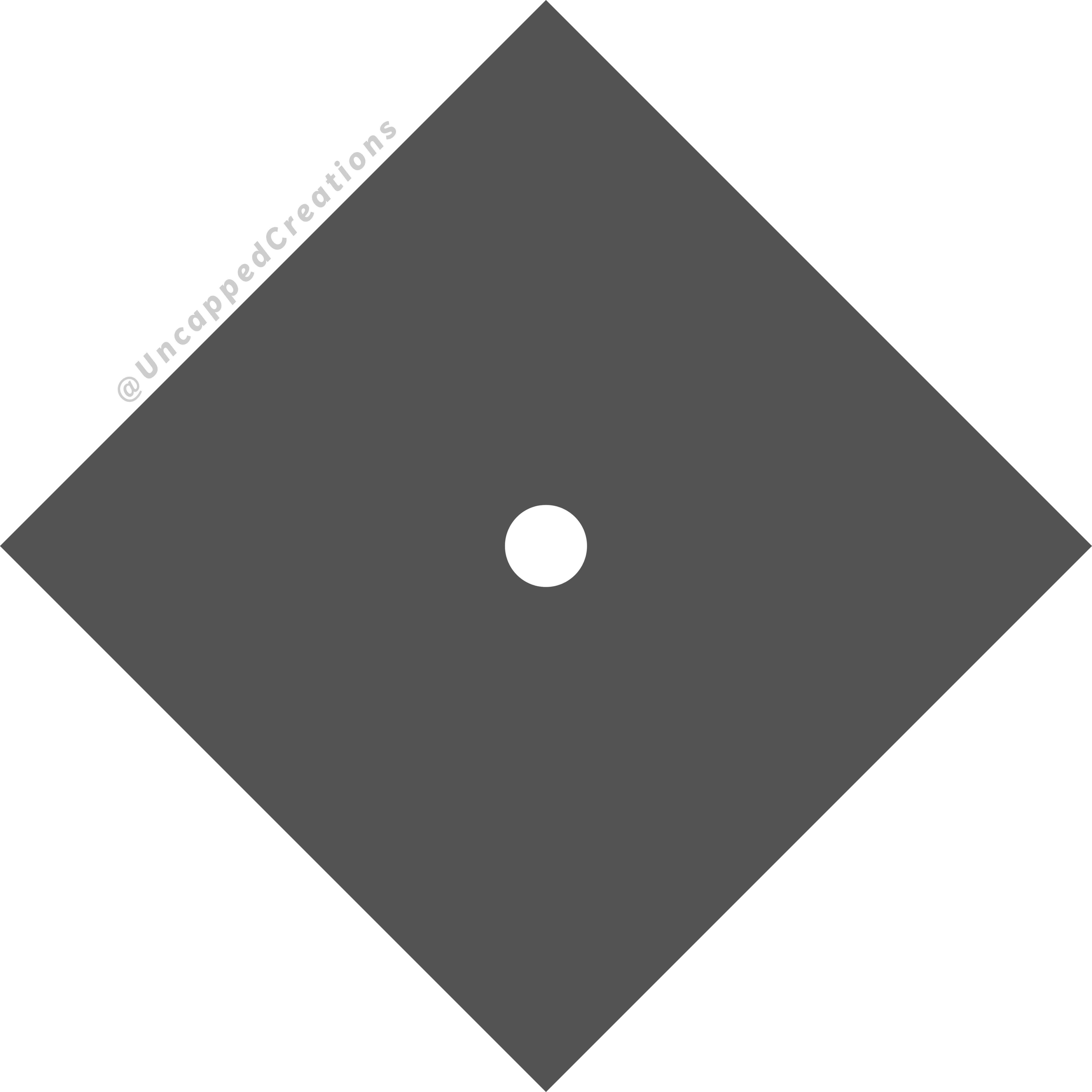 Design is 9.5 x 9.5 inches with an approximate 1 inch hole in the center and double sided adhesive in the back. Design is hand cut on cardstock paper. The topper will fit the standard 9 x 9 inches graduation cap / mortar board. Cap is not included.