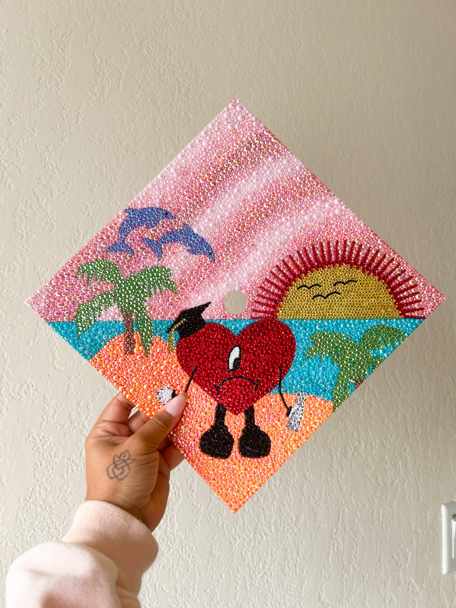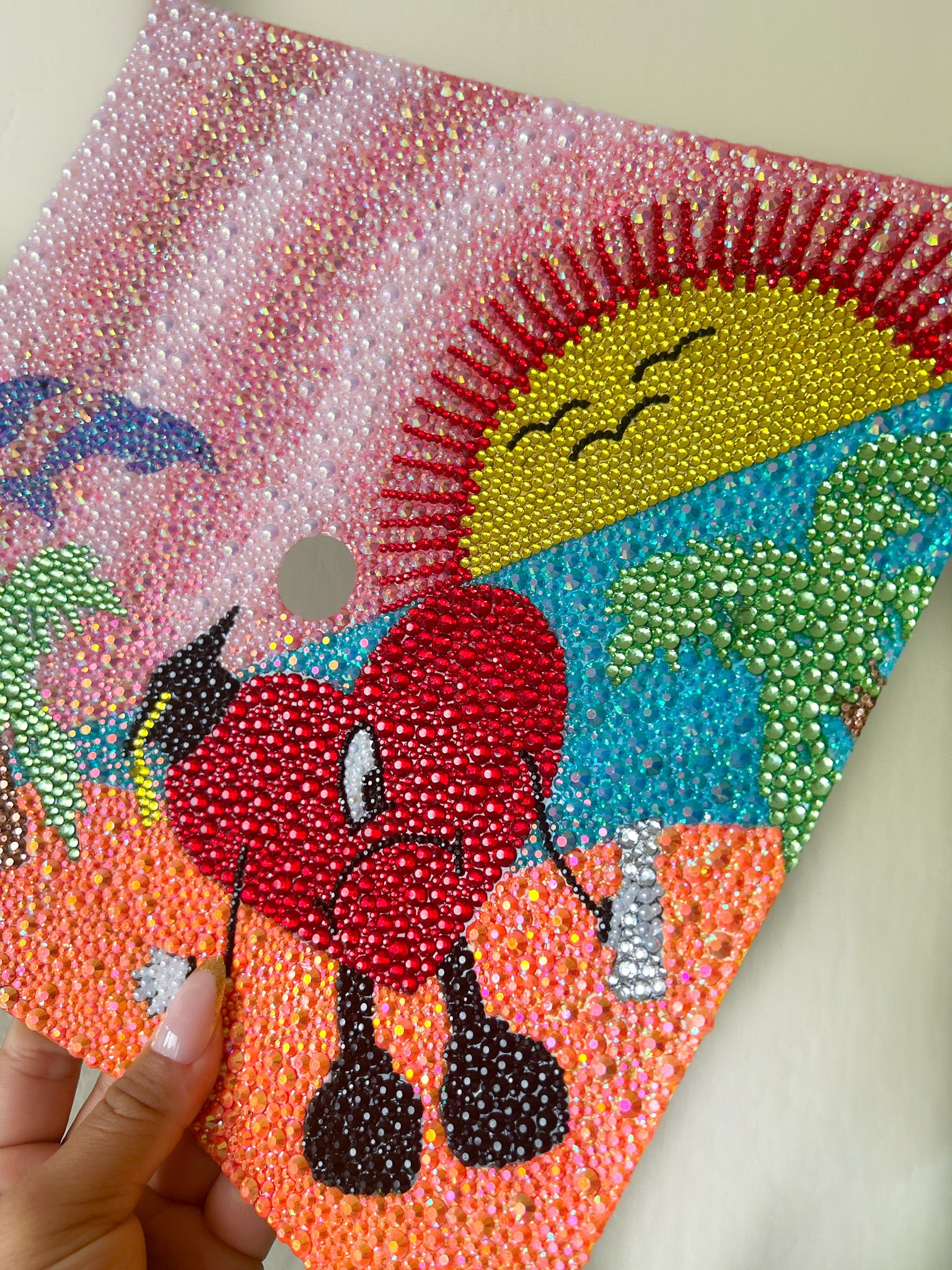Bad Bunny Grad Cap - RHINESTONED Topper