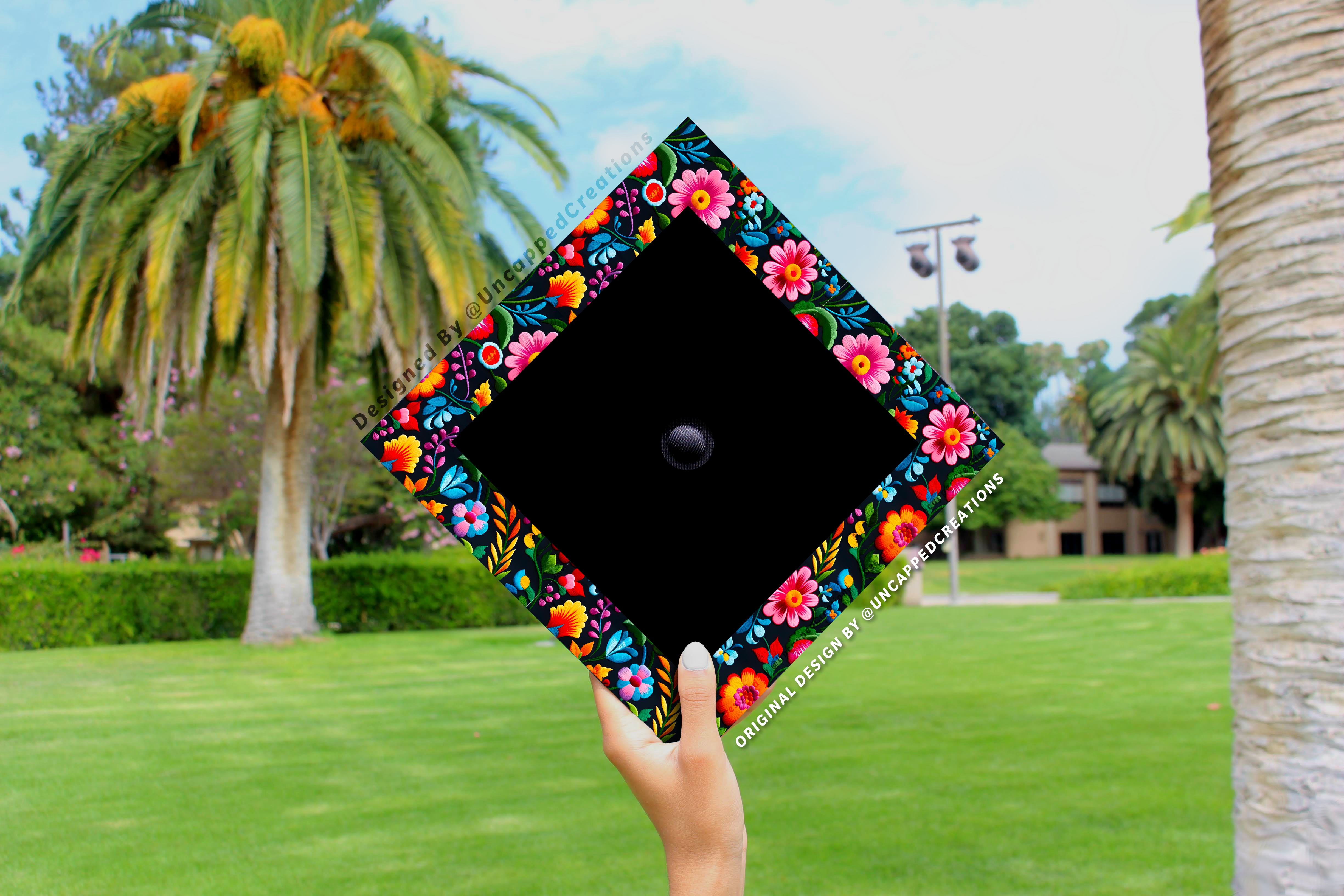 Mexican Embroidery Grad Cap (Zoomed In) - PRINTED Topper