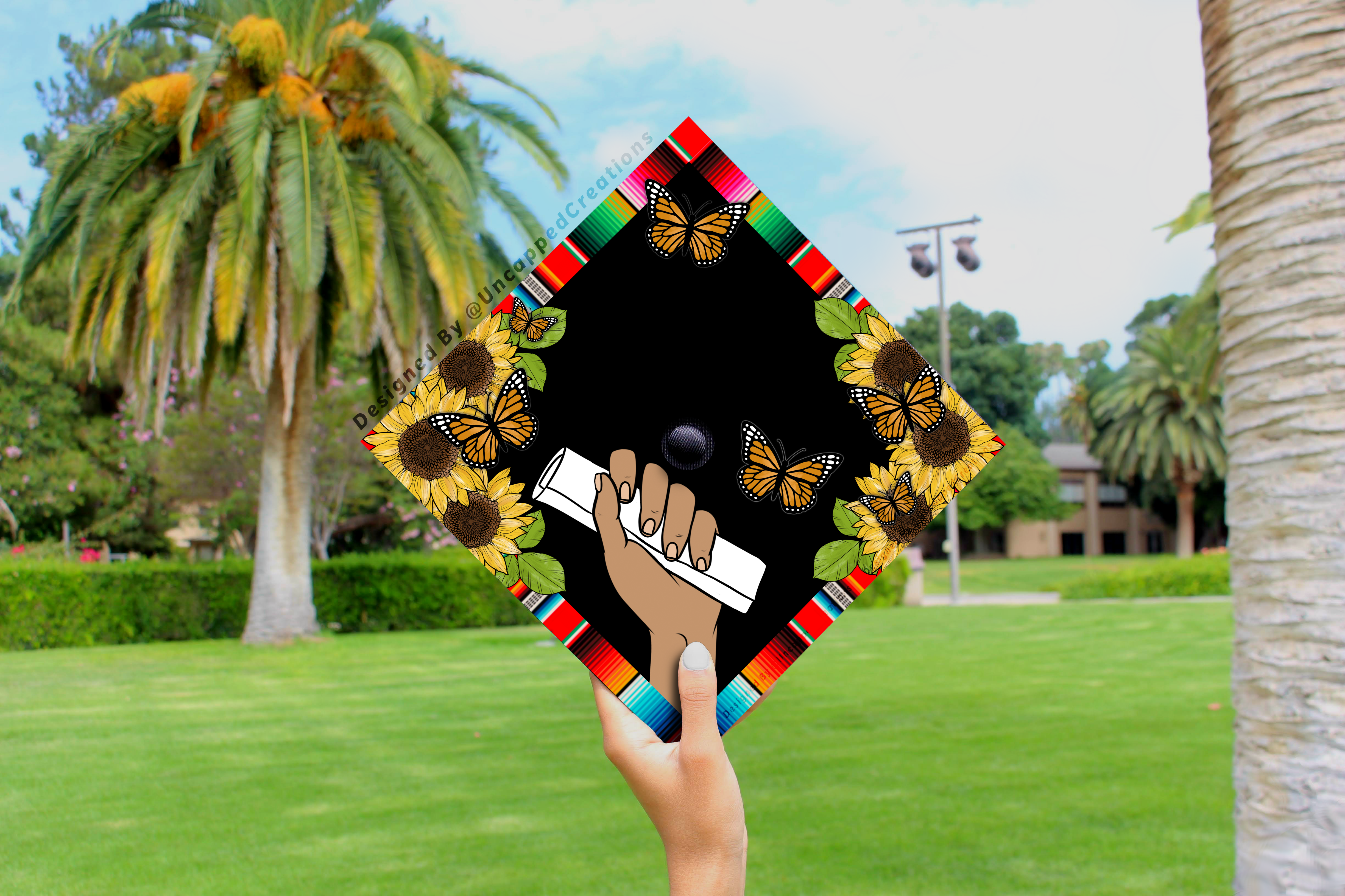 Keywords: immigrant, hand, diploma, sunflowers, butterflies, spanish