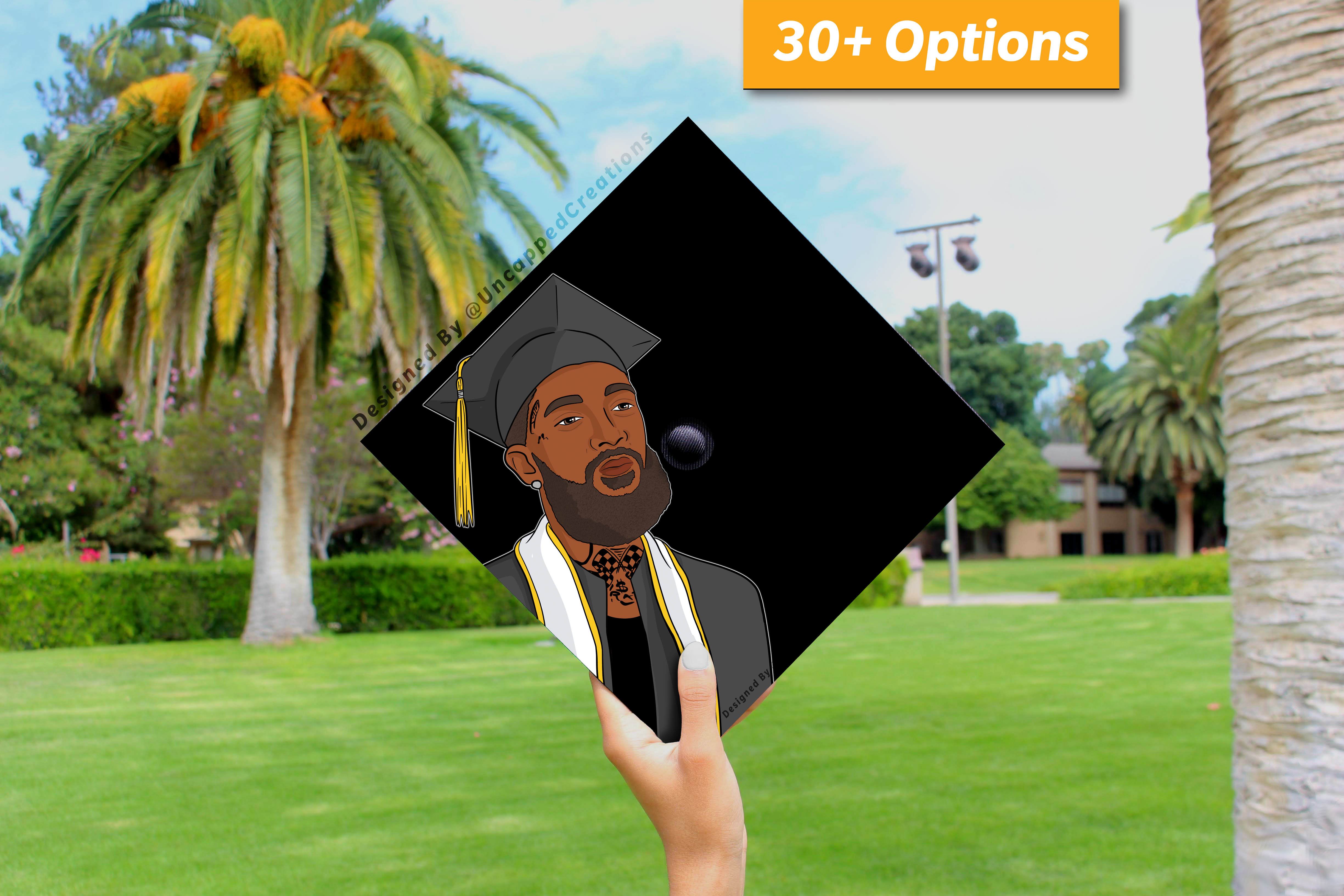 Design is 9.5 x 9.5 inches with an approximate 1 inch hole in the center and double sided adhesive in the back. Design is printed on cardstock, not hand painted. The topper will fit the standard 9 x 9 inches graduation cap / mortar board. (If you need a different size, please let me know the size IN INCHES that you need it for.)