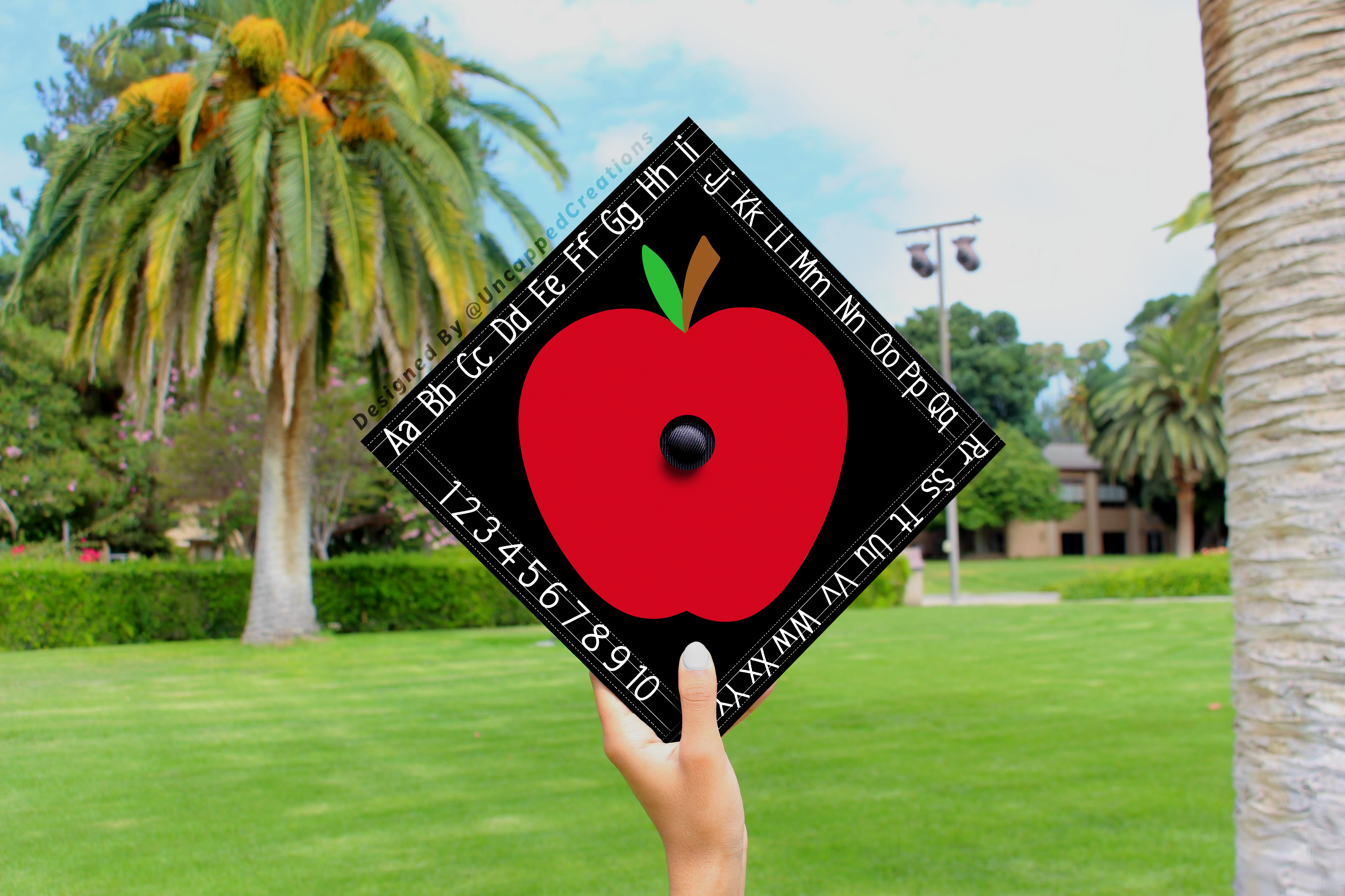 Design is 9.5 x 9.5 inches with an approximate 1 inch hole in the center and double sided adhesive in the back. Design is printed on cardstock, not hand painted. The topper will fit the standard 9 x 9 inches graduation cap / mortar board. (If you need a different size, please let me know the size IN INCHES that you need it for.)