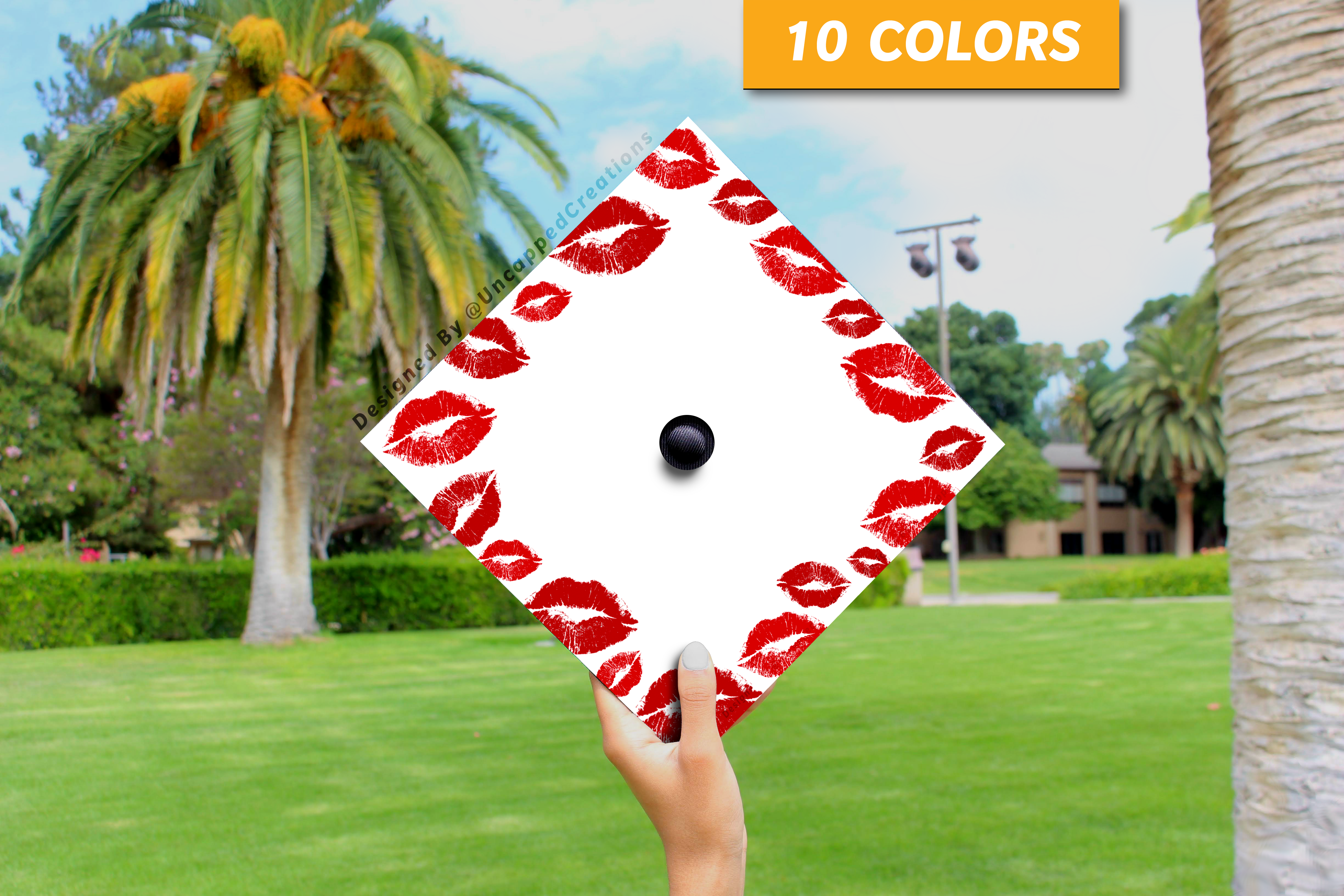 Design is 9.5 x 9.5 inches with an approximate 1 inch hole in the center and double sided adhesive in the back. Design is printed on cardstock, not hand painted. The topper will fit the standard 9 x 9 inches graduation cap / mortar board. (If you need a different size, please let me know the size IN INCHES that you need it for.)