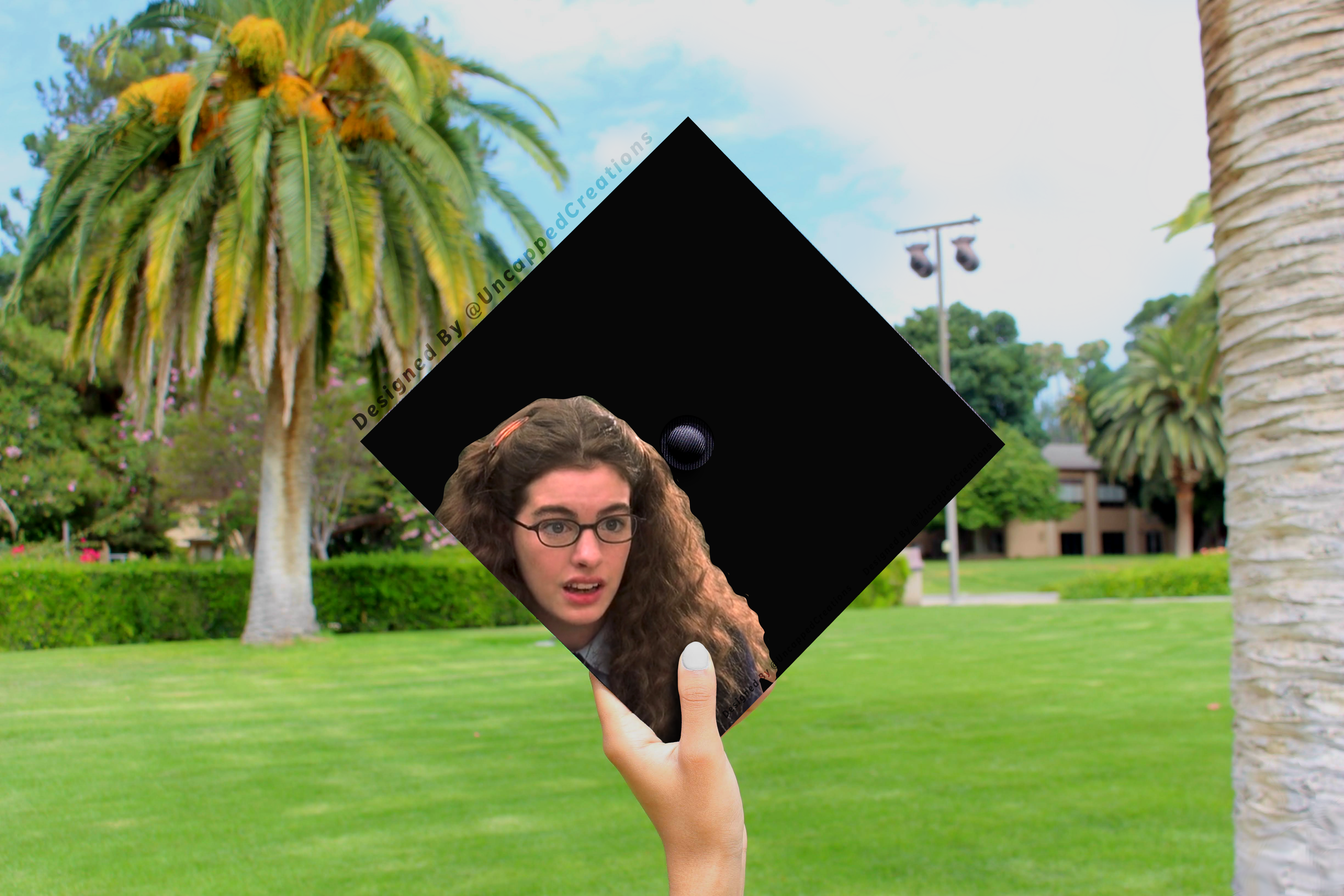 Design is 9.5 x 9.5 inches with an approximate 1 inch hole in the center and double sided adhesive in the back. Design is printed on cardstock, not hand painted. The topper will fit the standard 9 x 9 inches graduation cap / mortar board. (If you need a different size, please let me know the size IN INCHES that you need it for.)