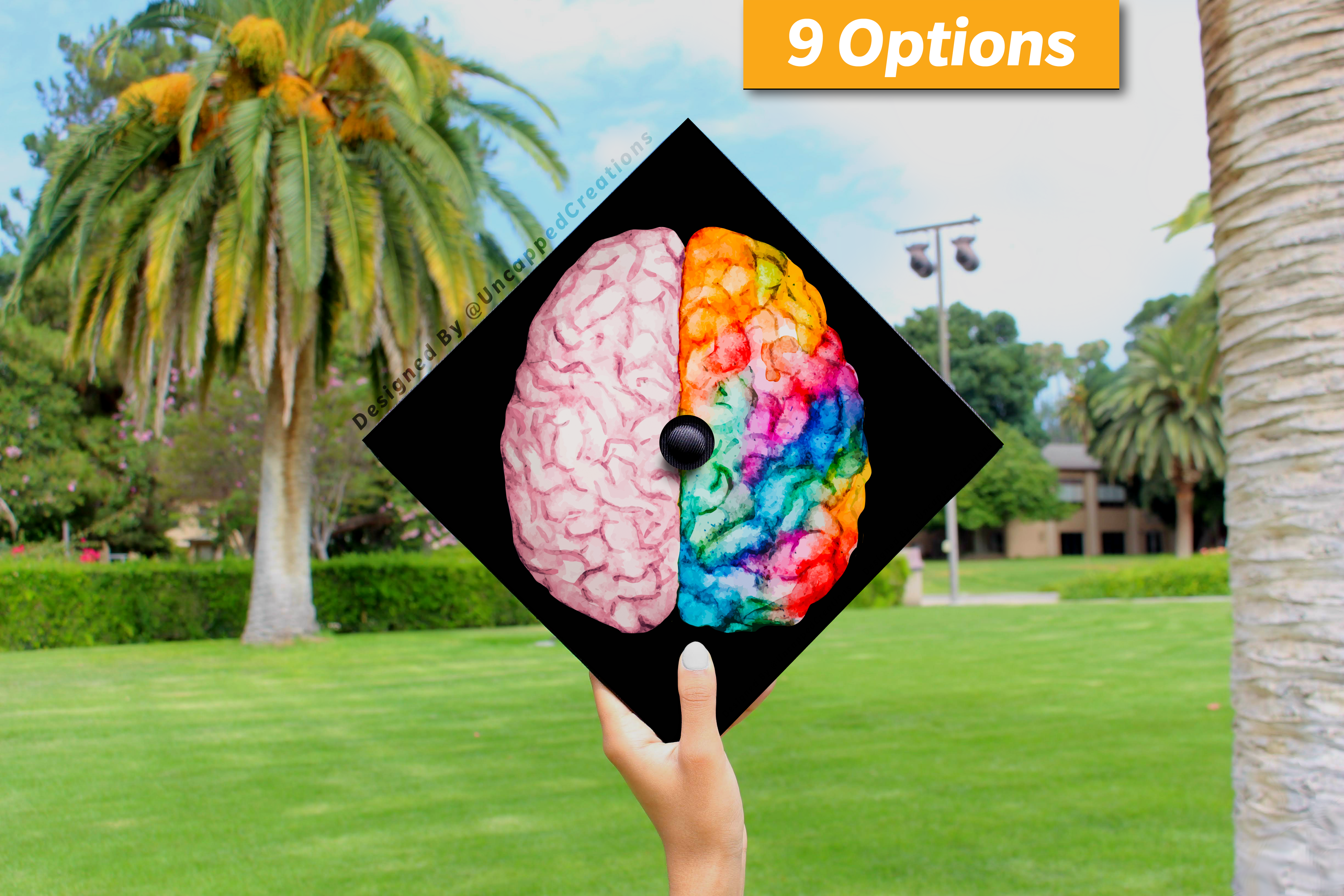 Design is 9.5 x 9.5 inches with an approximate 1 inch hole in the center and double sided adhesive in the back. Design is printed on cardstock, not hand painted. The topper will fit the standard 9 x 9 inches graduation cap / mortar board. (If you need a different size, please let me know the size IN INCHES that you need it for.)