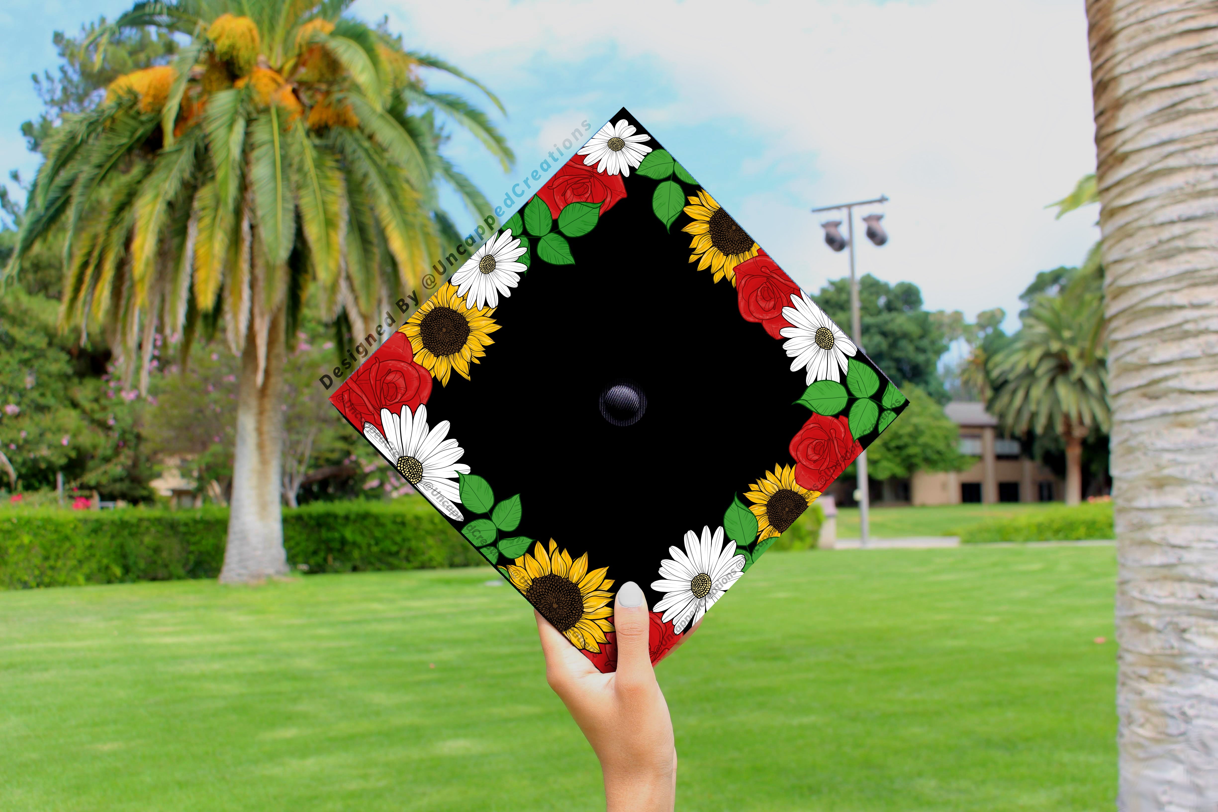 Sunflowers and Roses Grad Cap - PRINTED Topper