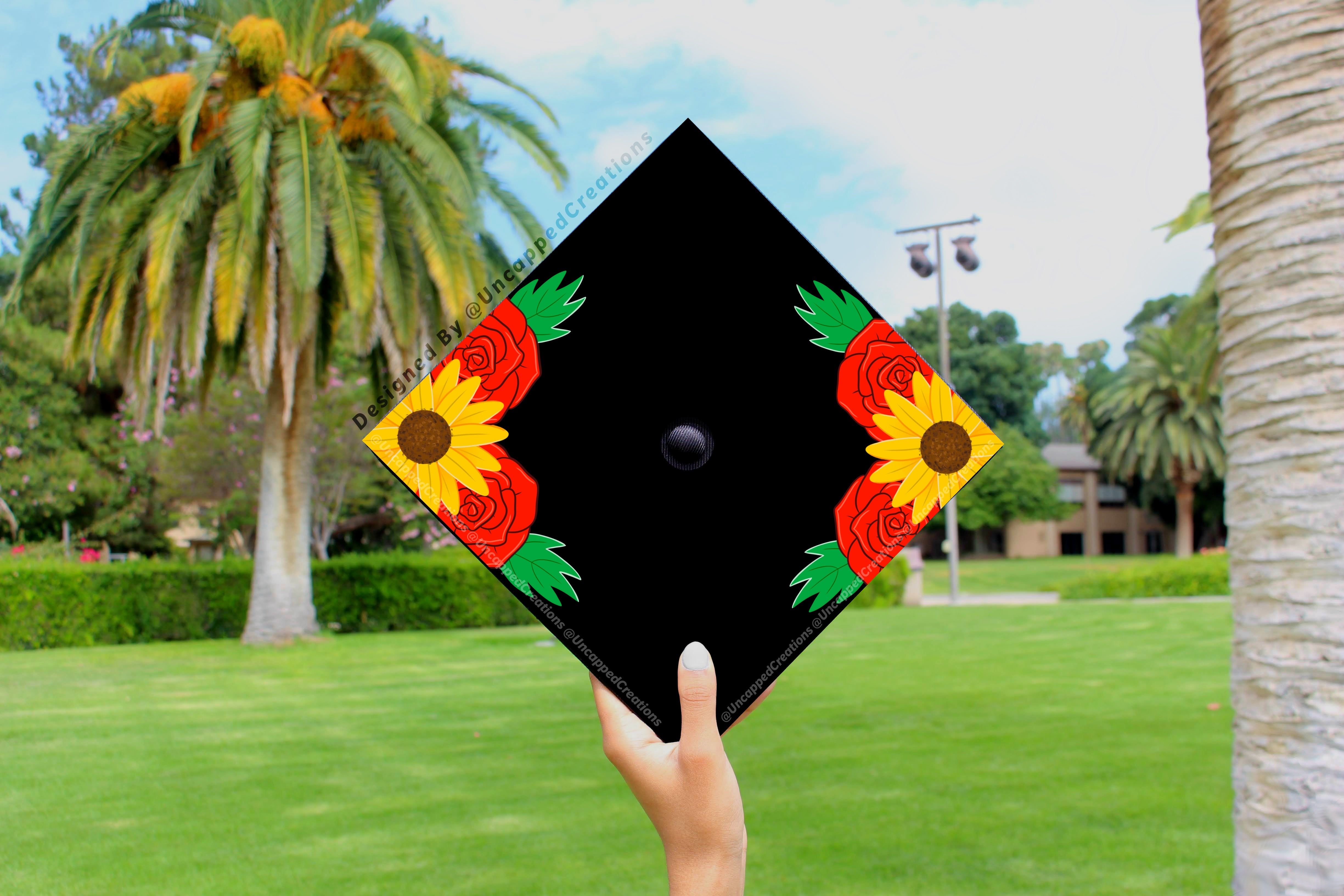 Sunflowers and Roses Grad Cap - PRINTED Topper