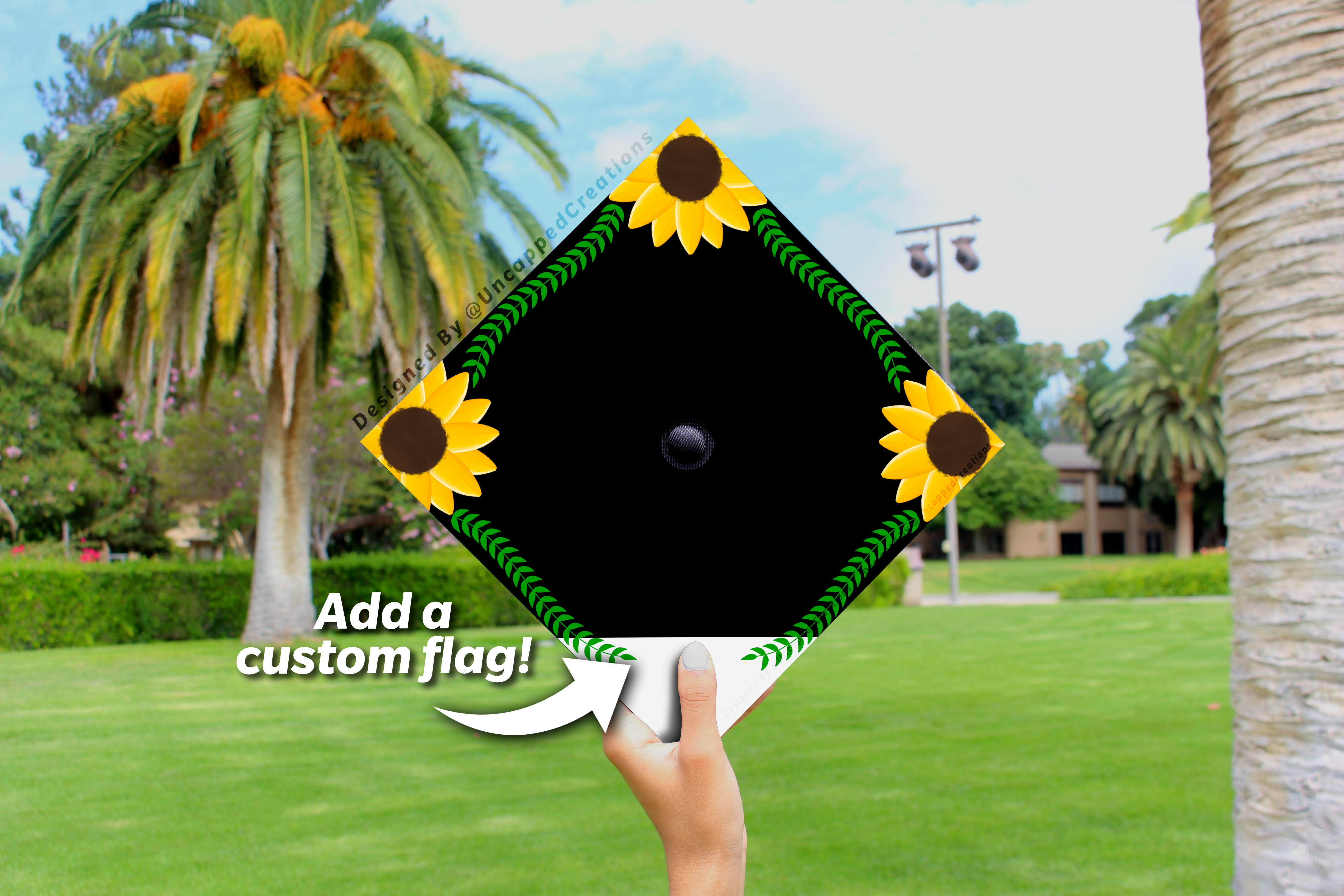 Sunflower and Flag Grad Cap - PRINTED Topper