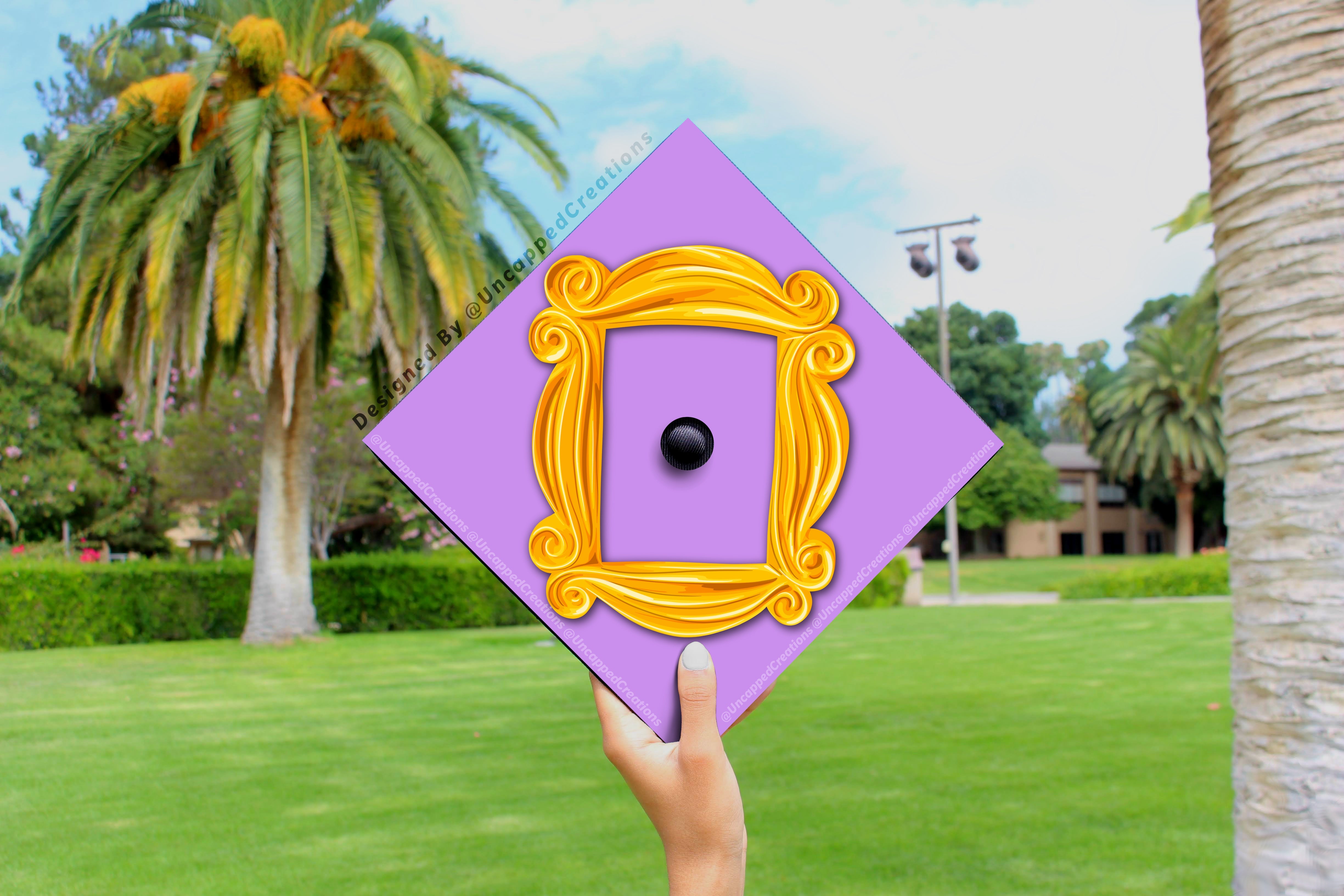 Design is 9.5 x 9.5 inches with an approximate 1 inch hole in the center and double sided adhesive in the back. Design is printed on cardstock, not hand painted. The topper will fit the standard 9 x 9 inches graduation cap / mortar board. (If you need a different size, please let me know the size IN INCHES that you need it for.)
