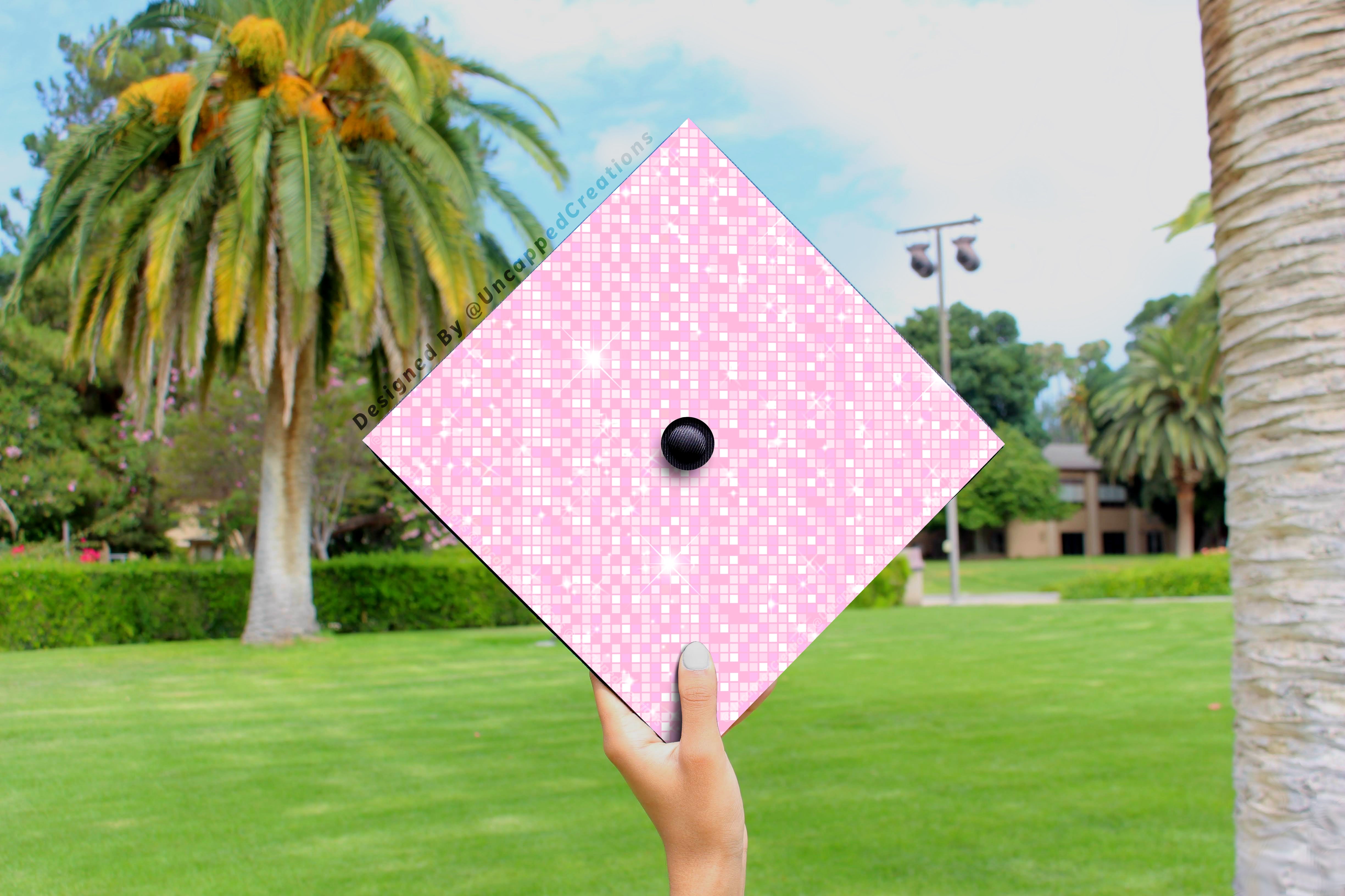 Design is 9.5 x 9.5 inches with an approximate 1 inch hole in the center and double sided adhesive in the back. Design is printed on cardstock, not hand painted. The topper will fit the standard 9 x 9 inches graduation cap / mortar board. (If you need a different size, please let me know the size IN INCHES that you need it for.)