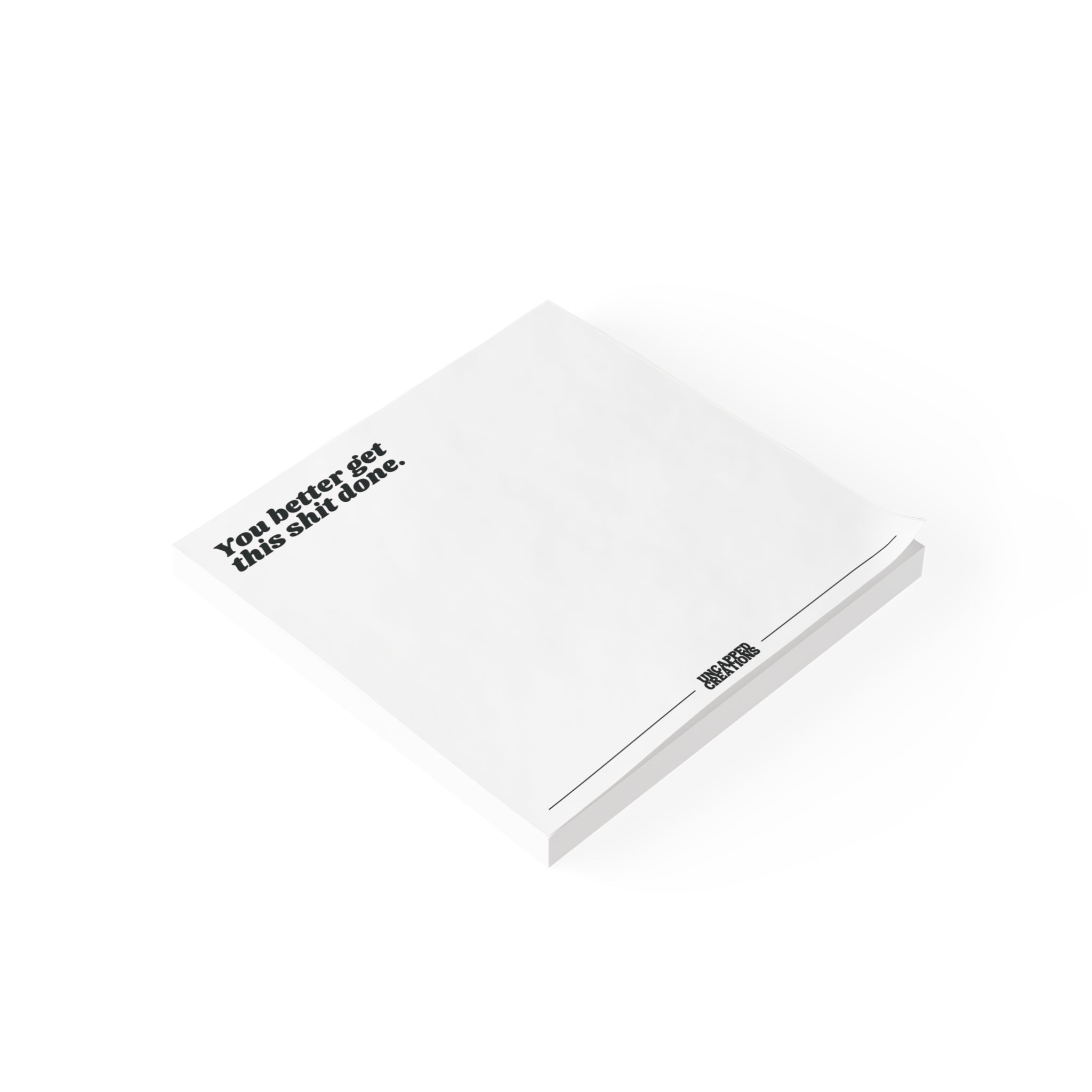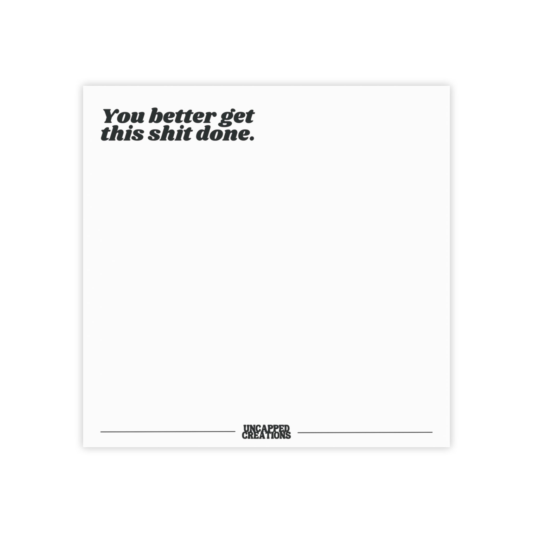 Time to get some shit done! This sticky note is great for students or anyone who wants to stay organized. This Sticky Note helps you jot down reminders and track your tasks effortlessly. Stick them anywhere for a visual boost and never let deadlines slip away again!