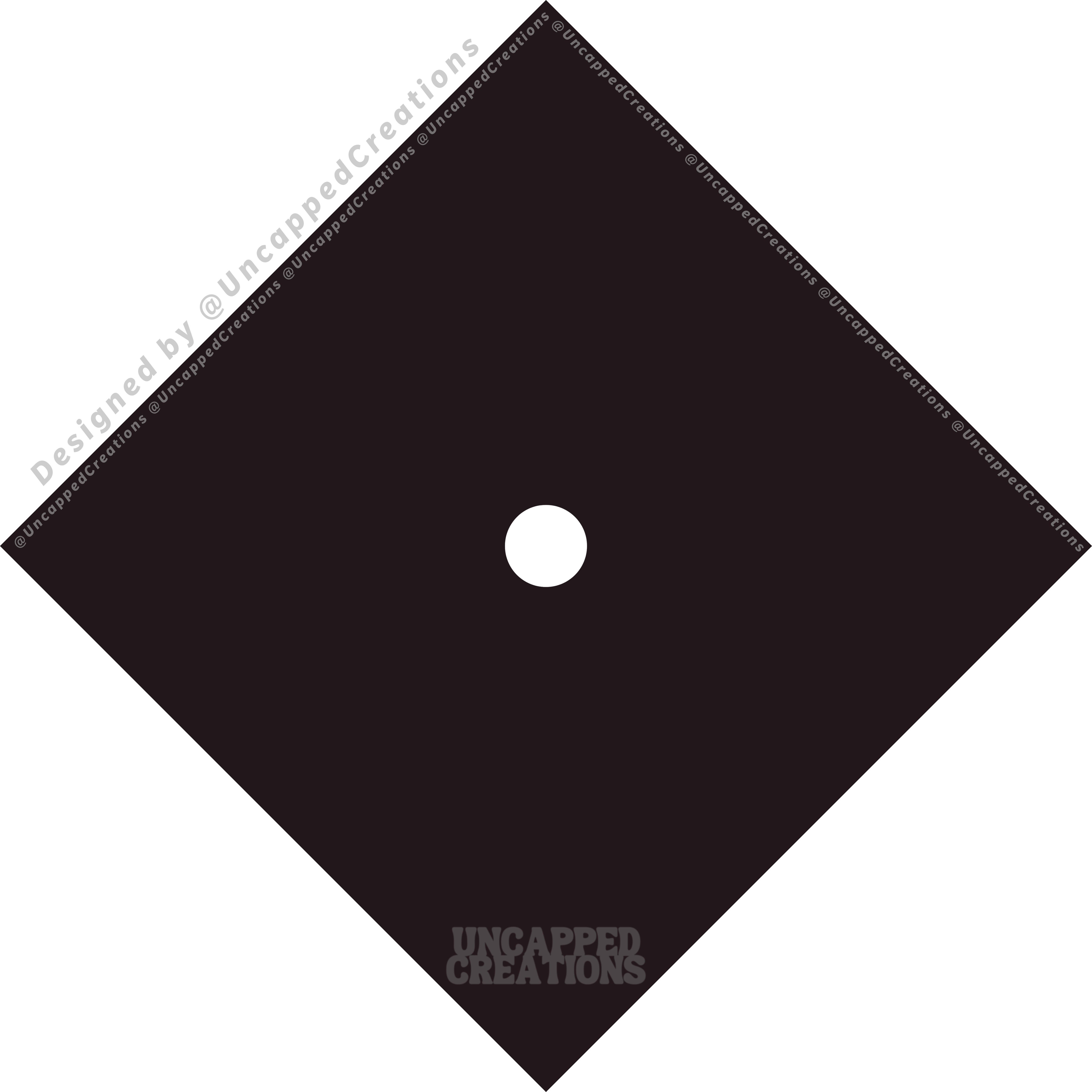 Design is 9.5 x 9.5 inches with an approximate 1 inch hole in the center and double sided adhesive in the back. Design is printed on cardstock, not hand painted. The topper will fit the standard 9 x 9 inches graduation cap / mortar board. (If you need a different size, please let me know the size IN INCHES that you need it for.)
