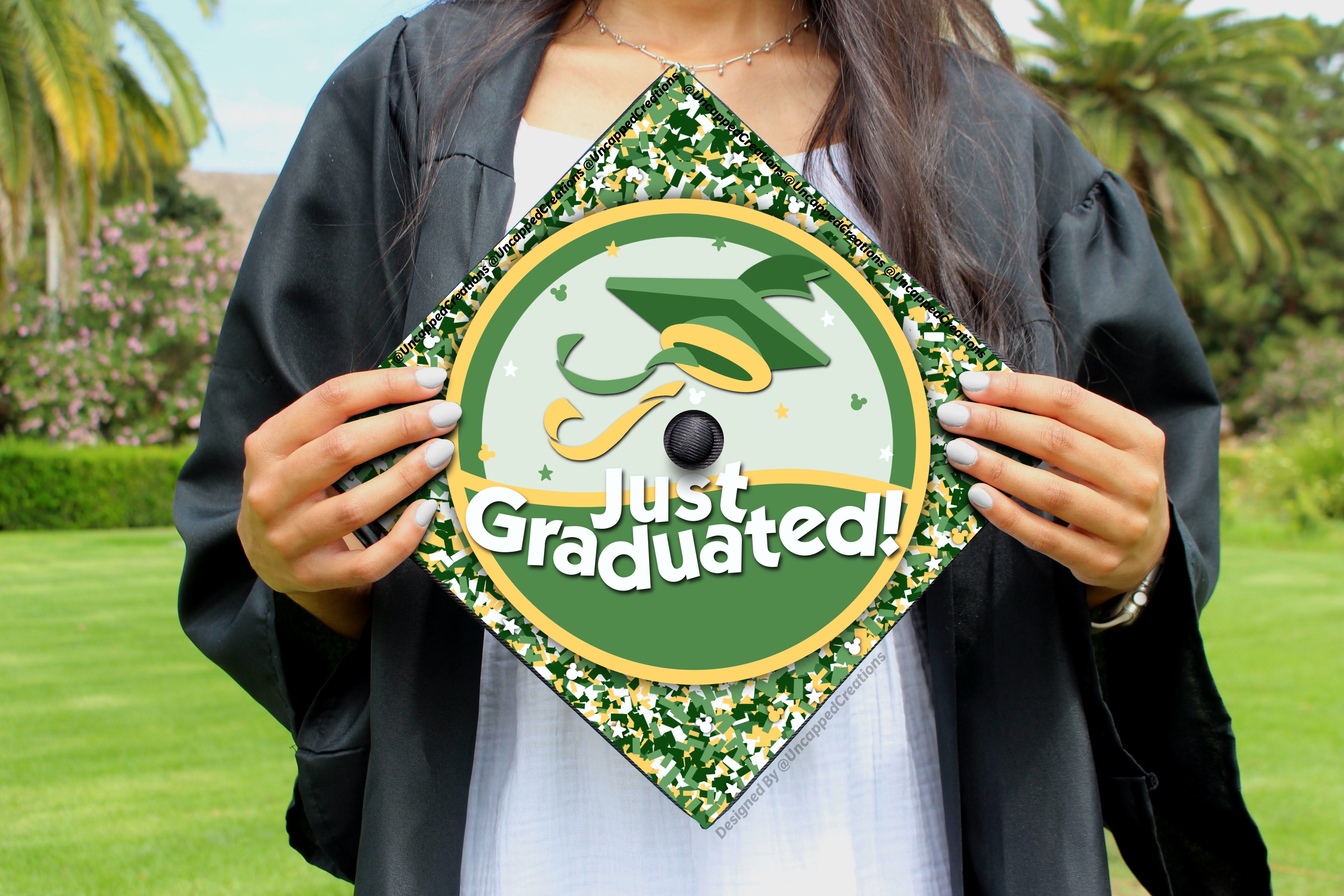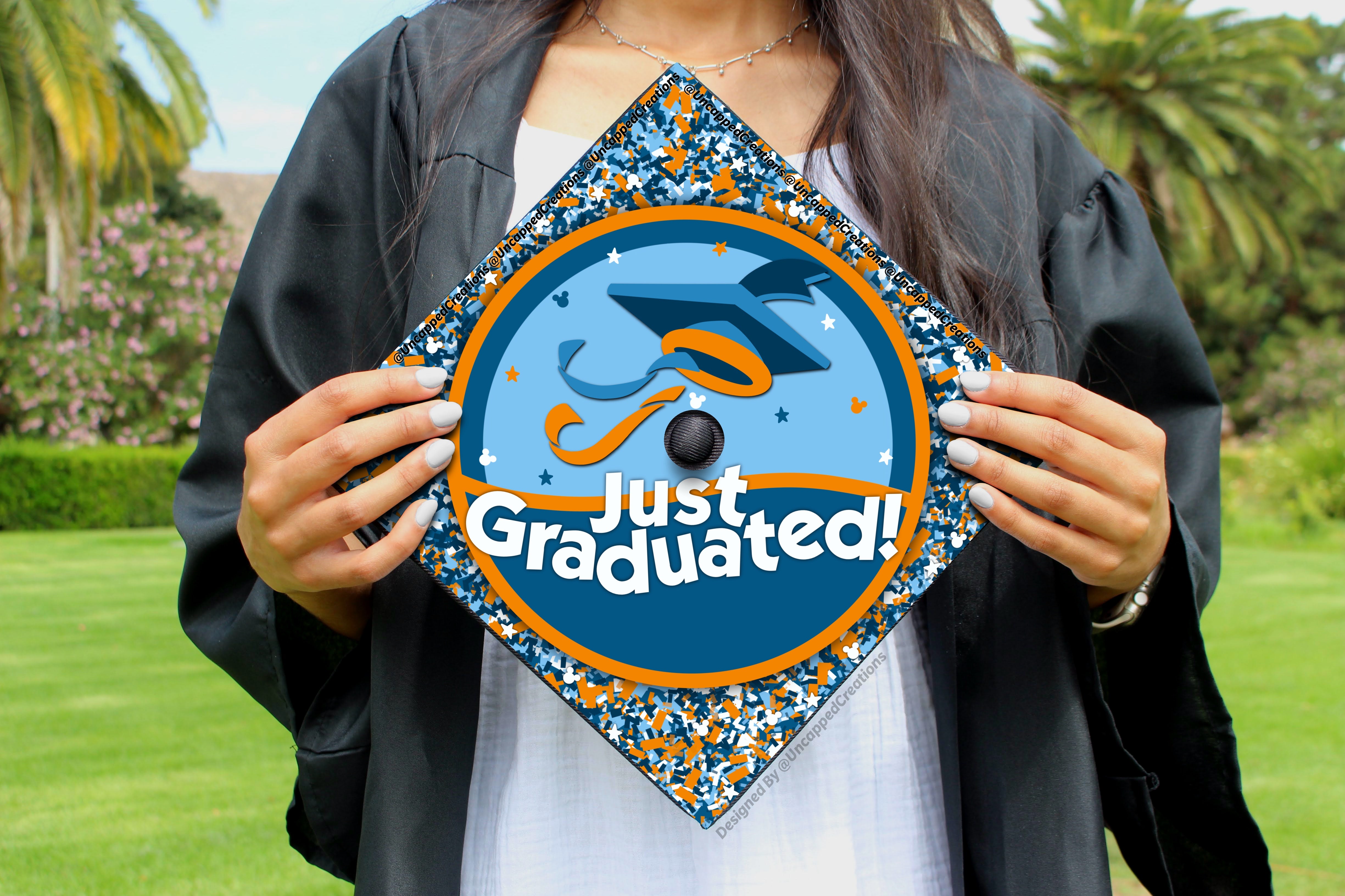 Premade grad cap design is sold AS IS. Design CANNOT be altered, edited, or changed and will be shipped exactly how you see it. Printed design may differ in color slightly in person. Watermarks are only on product photos, actual product will not have a watermark.