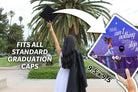 Design is 9.5 x 9.5 inches with an approximate 1 inch hole in the center and double sided adhesive in the back. Design is printed on cardstock, not hand painted. The topper will fit the standard 9 x 9 inches graduation cap / mortar board. Cap/Mortar board is not included. Center circle is not included.