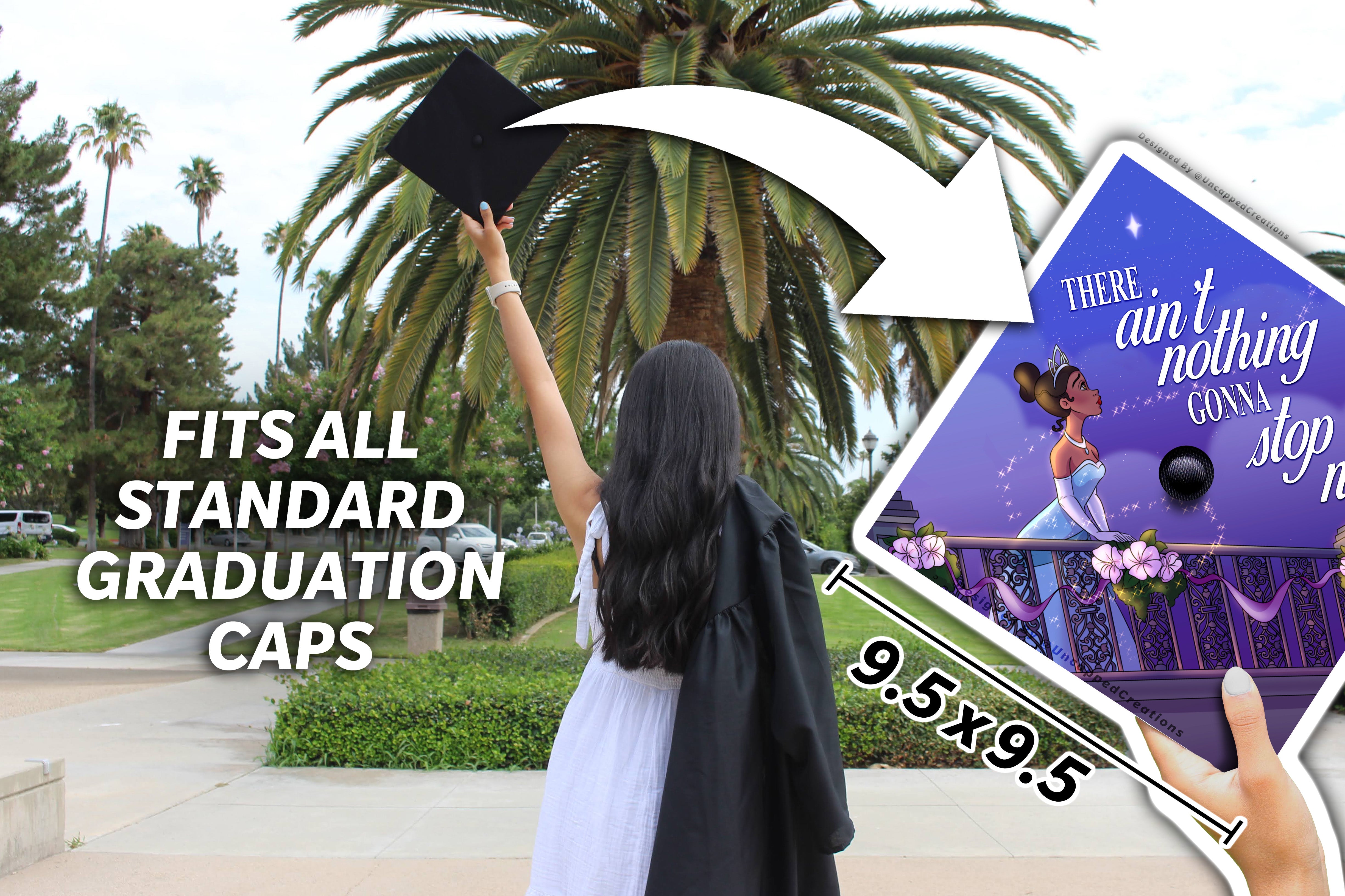 Premade grad cap design is sold AS IS. Design CANNOT be altered, edited, or changed and will be shipped exactly how you see it. Printed design may differ in color slightly in person. Watermarks are only on product photos, actual product will not have a watermark.