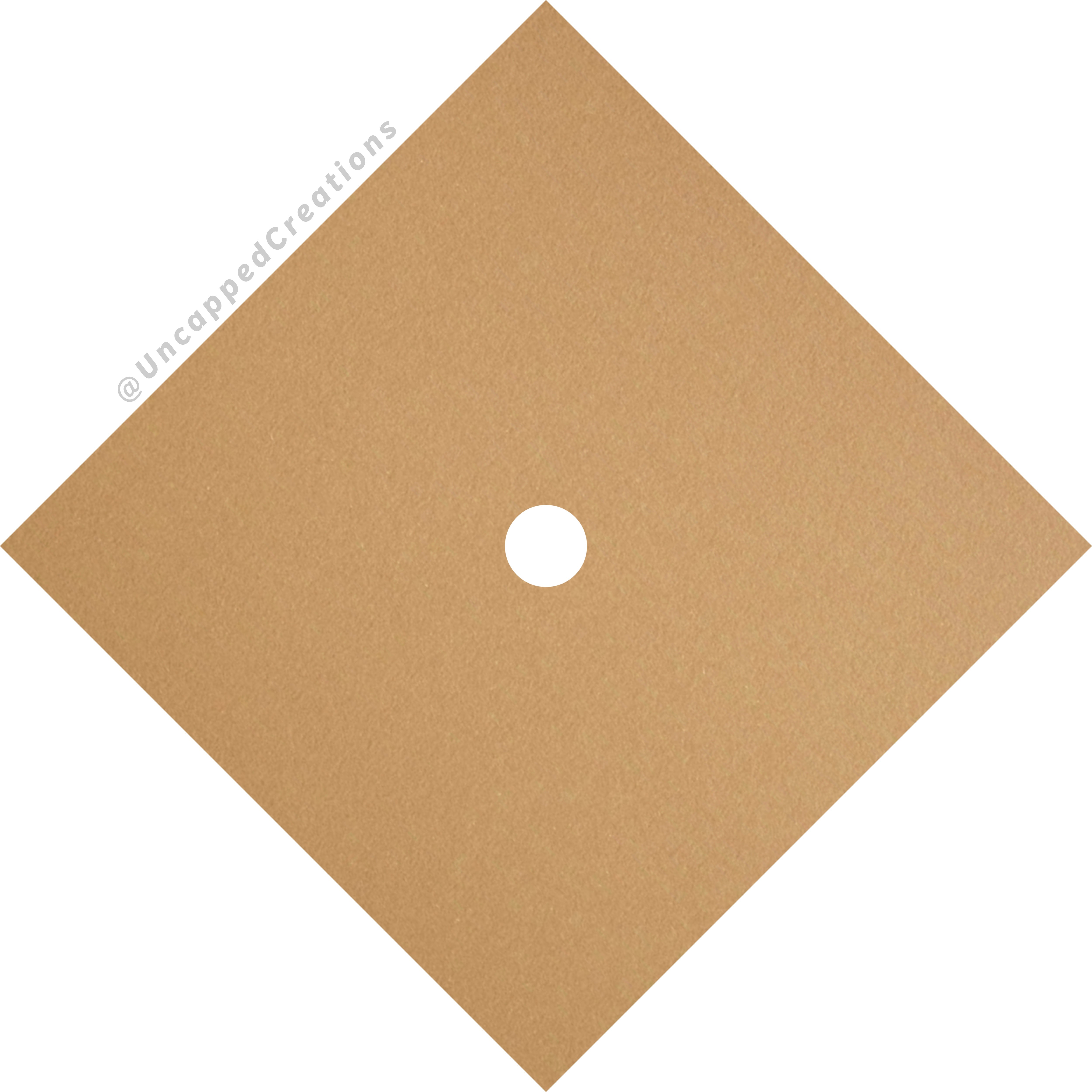 Design is 9.5 x 9.5 inches with an approximate 1 inch hole in the center and double sided adhesive in the back. Design is hand cut on cardstock paper. The topper will fit the standard 9 x 9 inches graduation cap / mortar board. Cap is not included.