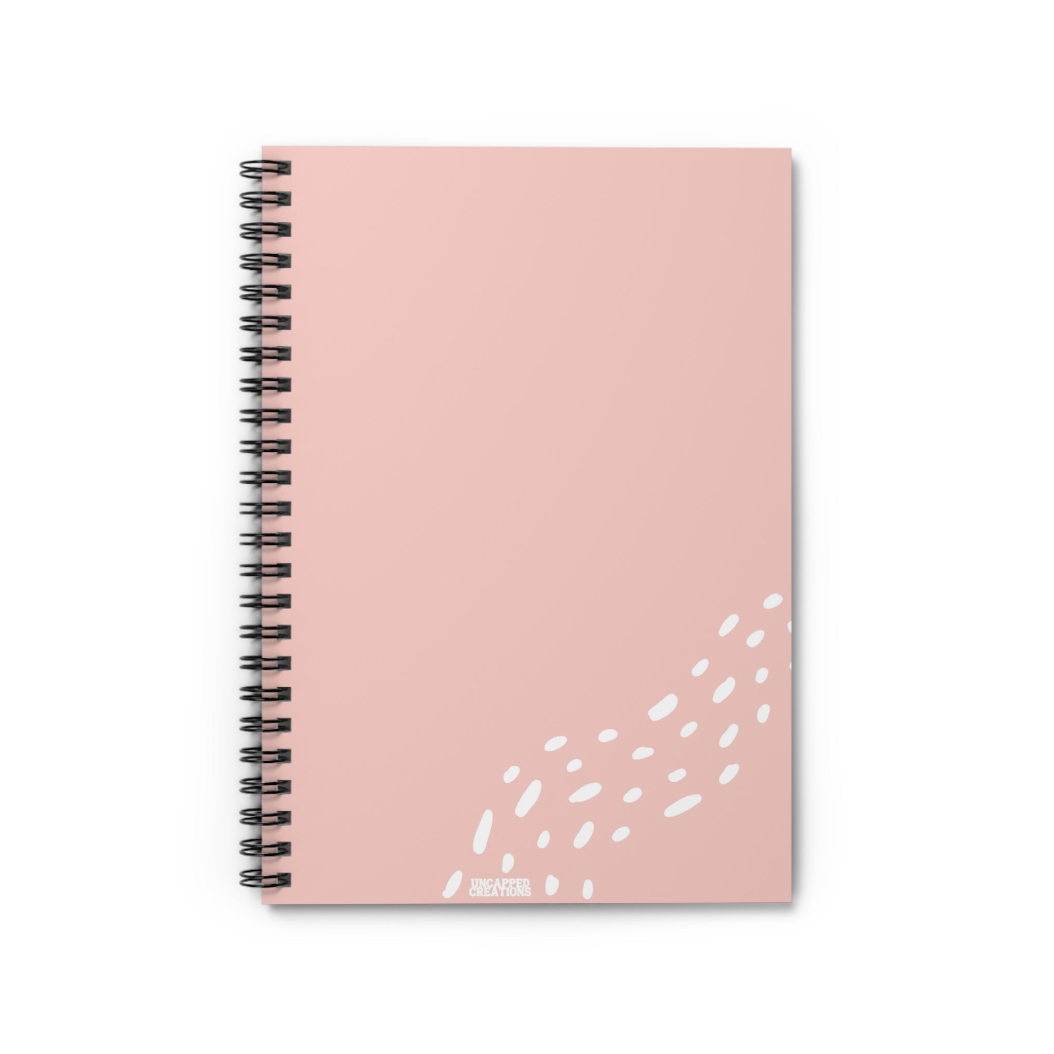Notebook Cover: A solid pink color base and a spotted trail of white dots on thr bottom right corner