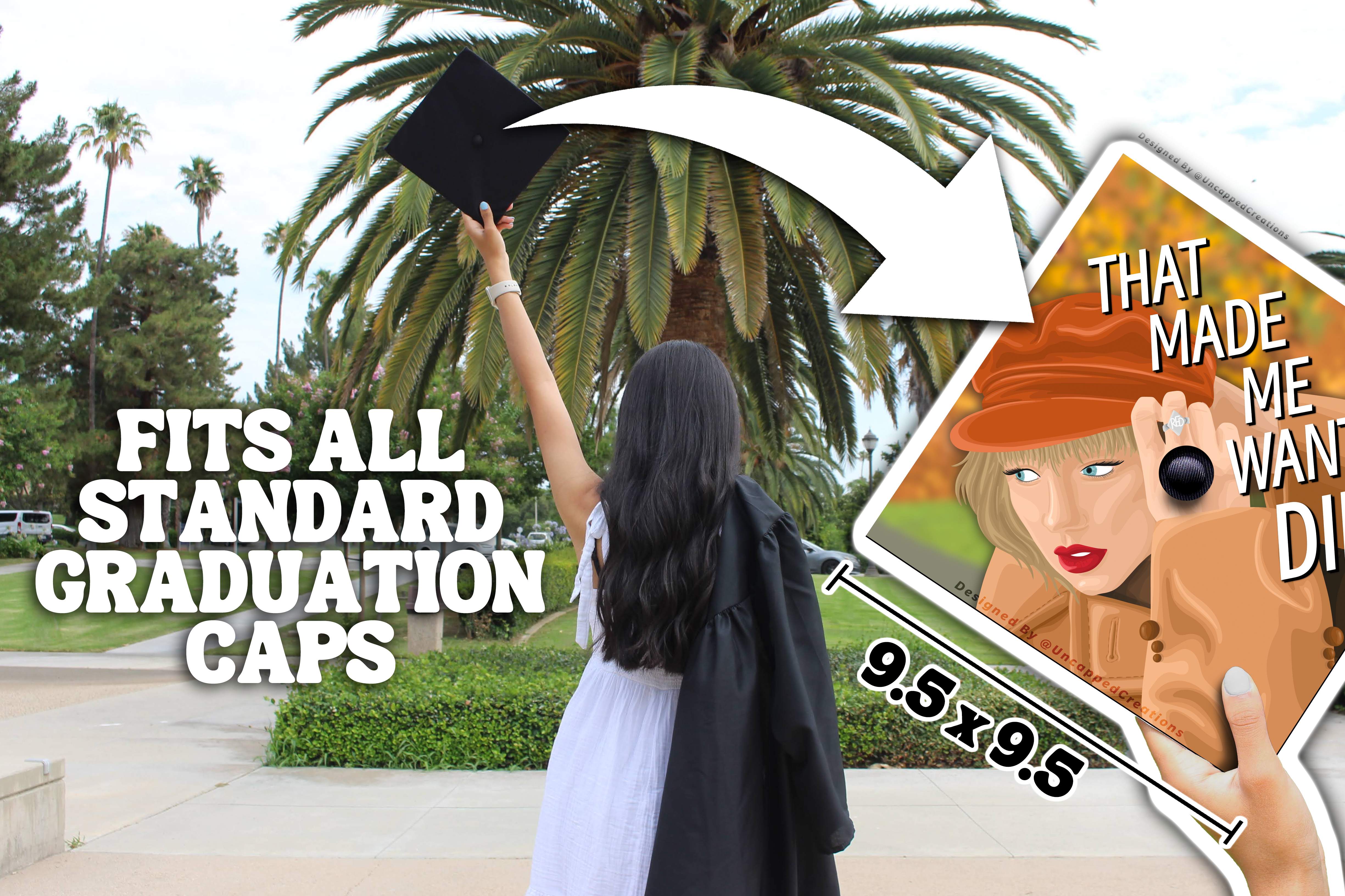Premade grad cap design is sold AS IS. Design CANNOT be altered, edited, or changed and will be shipped exactly how you see it. Printed design may differ in color slightly in person. Watermarks are only on product photos, actual product will not have a watermark.