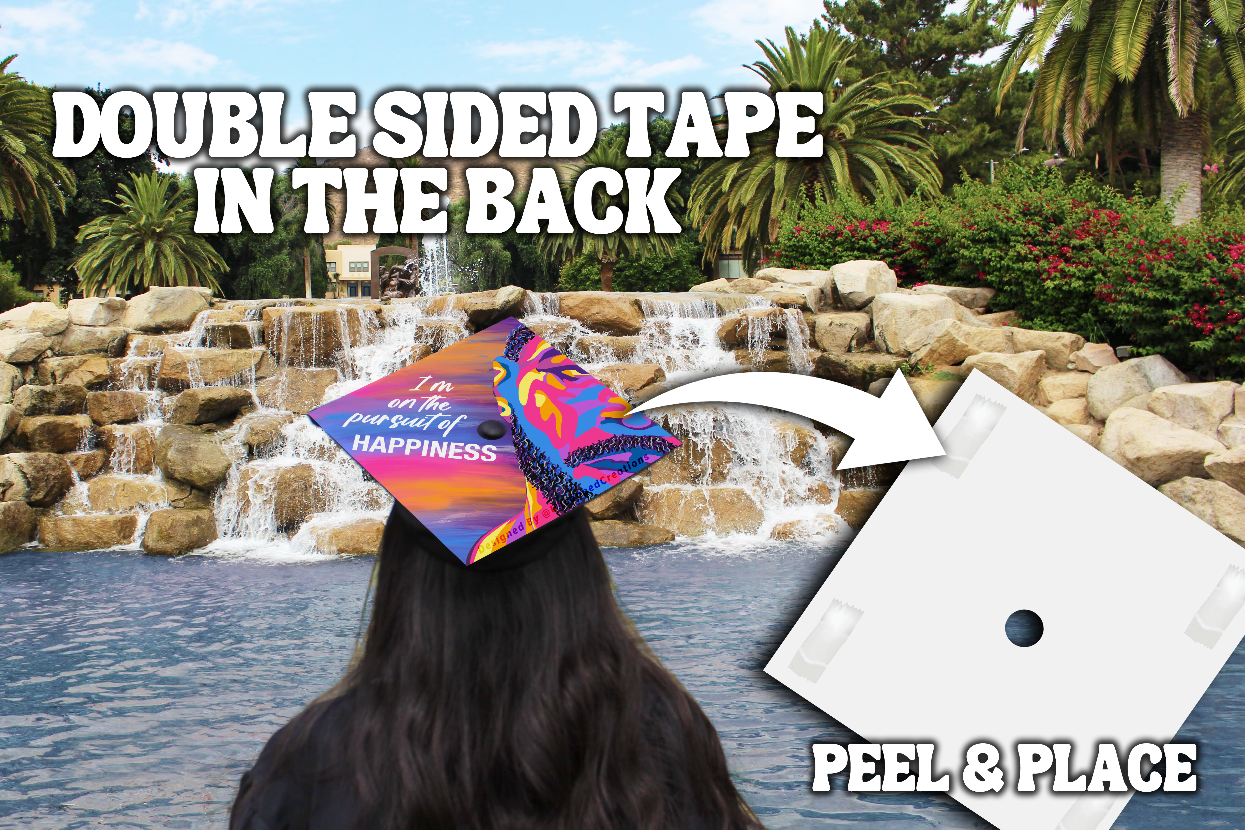 Premade grad cap design is sold AS IS. Design CANNOT be altered, edited, or changed and will be shipped exactly how you see it. Printed design may differ in color slightly in person. Watermarks are only on product photos, actual product will not have a watermark.