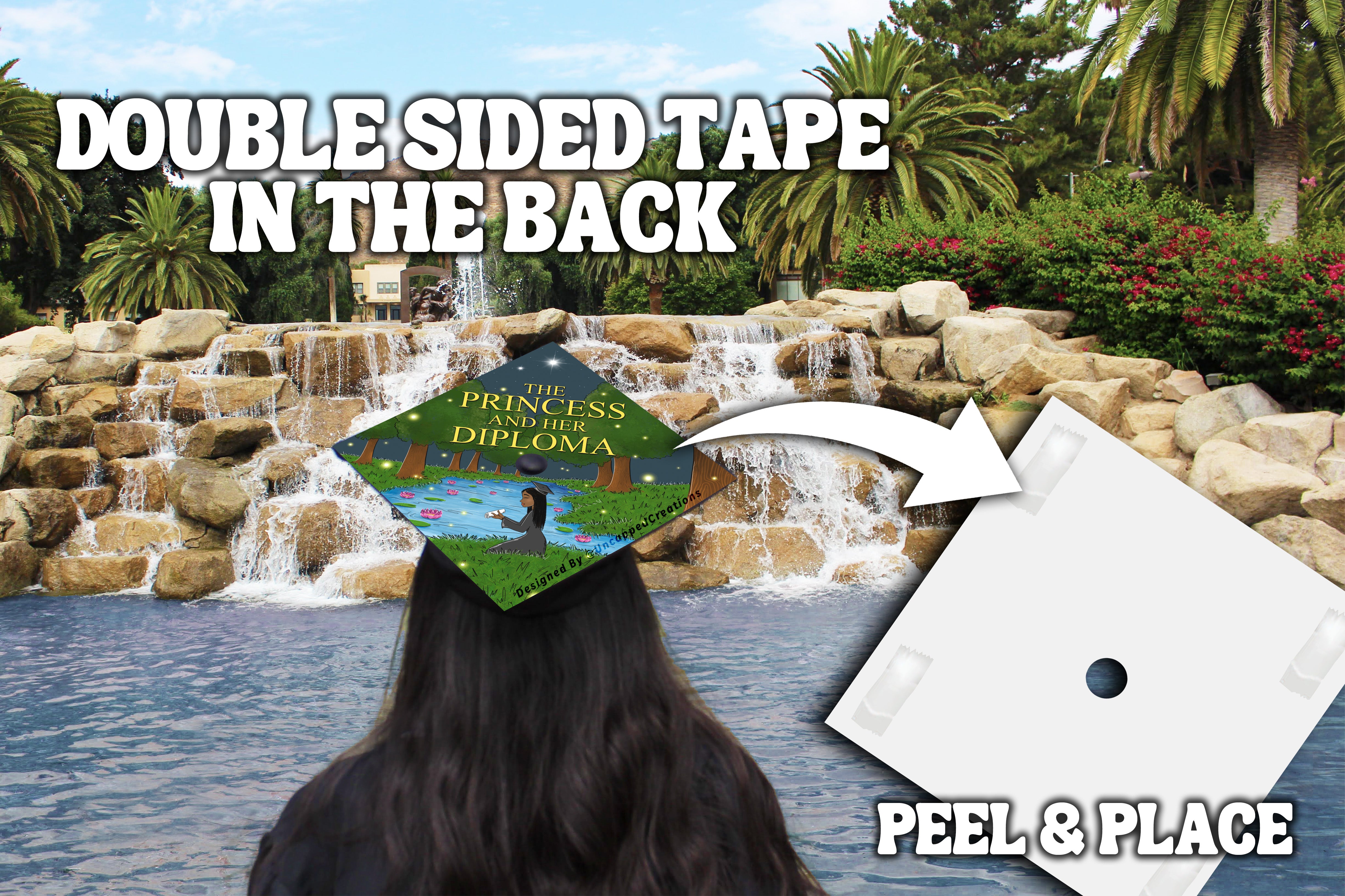 Premade grad cap design is sold AS IS. Design CANNOT be altered, edited, or changed and will be shipped exactly how you see it. Printed design may differ in color slightly in person. Watermarks are only on product photos, actual product will not have a watermark.