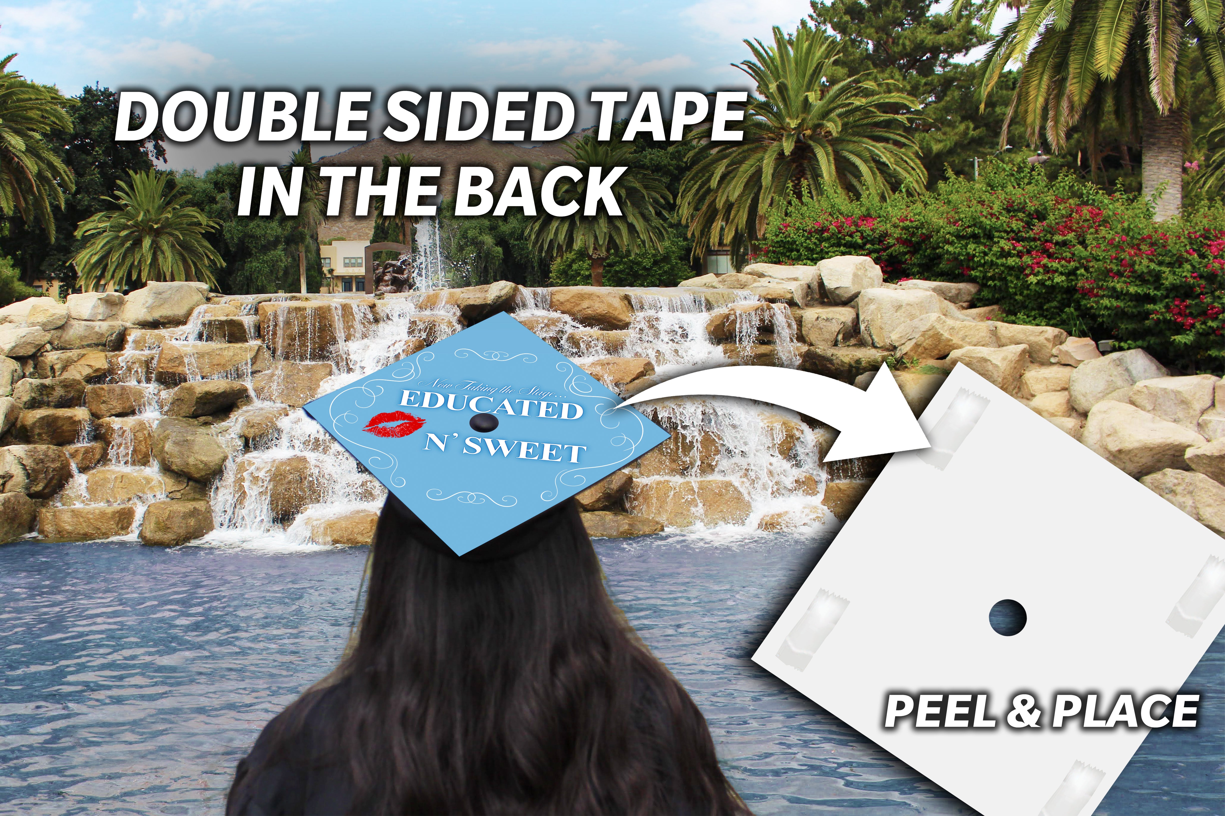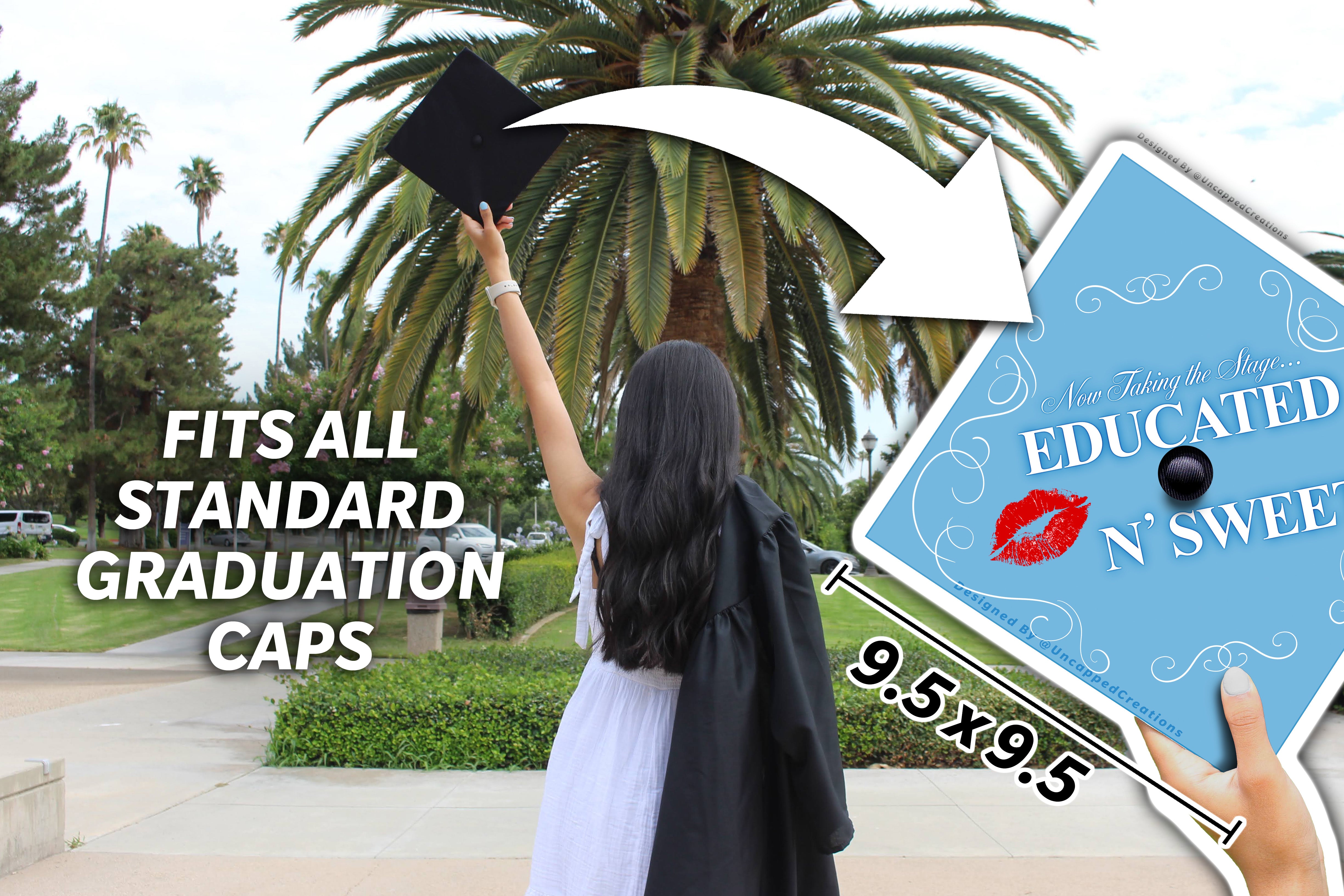 Premade grad cap design is sold AS IS. Design CANNOT be altered, edited, or changed and will be shipped exactly how you see it. Printed design may differ in color slightly in person. Watermarks are only on product photos, actual product will not have a watermark.