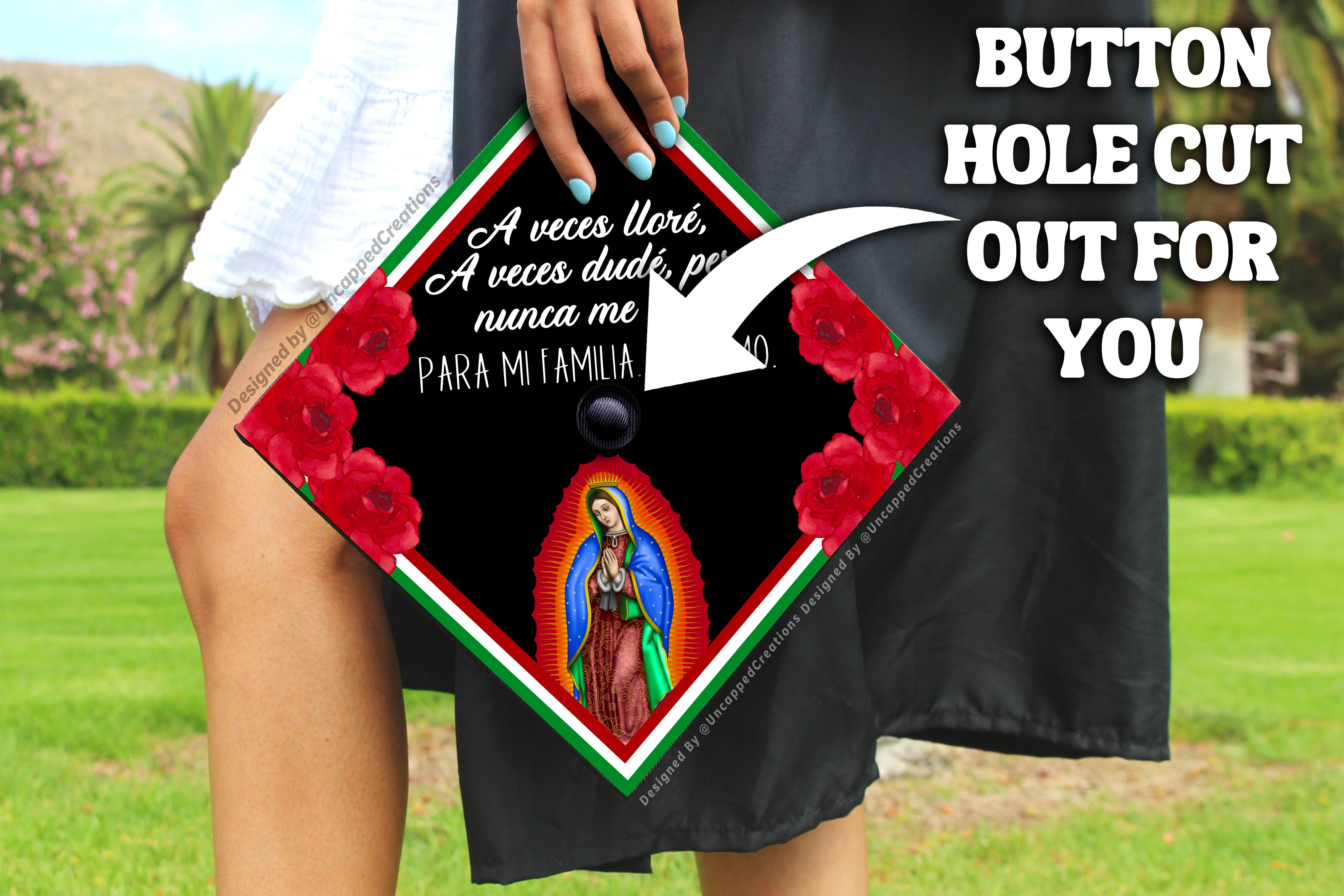 Design is 9.5 x 9.5 inches with an approximate 1 inch hole in the center and double sided adhesive in the back. Design is printed on cardstock, not hand painted. The topper will fit the standard 9 x 9 inches graduation cap / mortar board. Cap/Mortar board is not included. Center circle is not included.