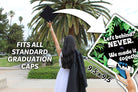 Design is 9.5 x 9.5 inches with an approximate 1 inch hole in the center and double sided adhesive in the back. Design is printed on cardstock, not hand painted. The topper will fit the standard 9 x 9 inches graduation cap / mortar board. Cap/Mortar board is not included. Center circle is not included.