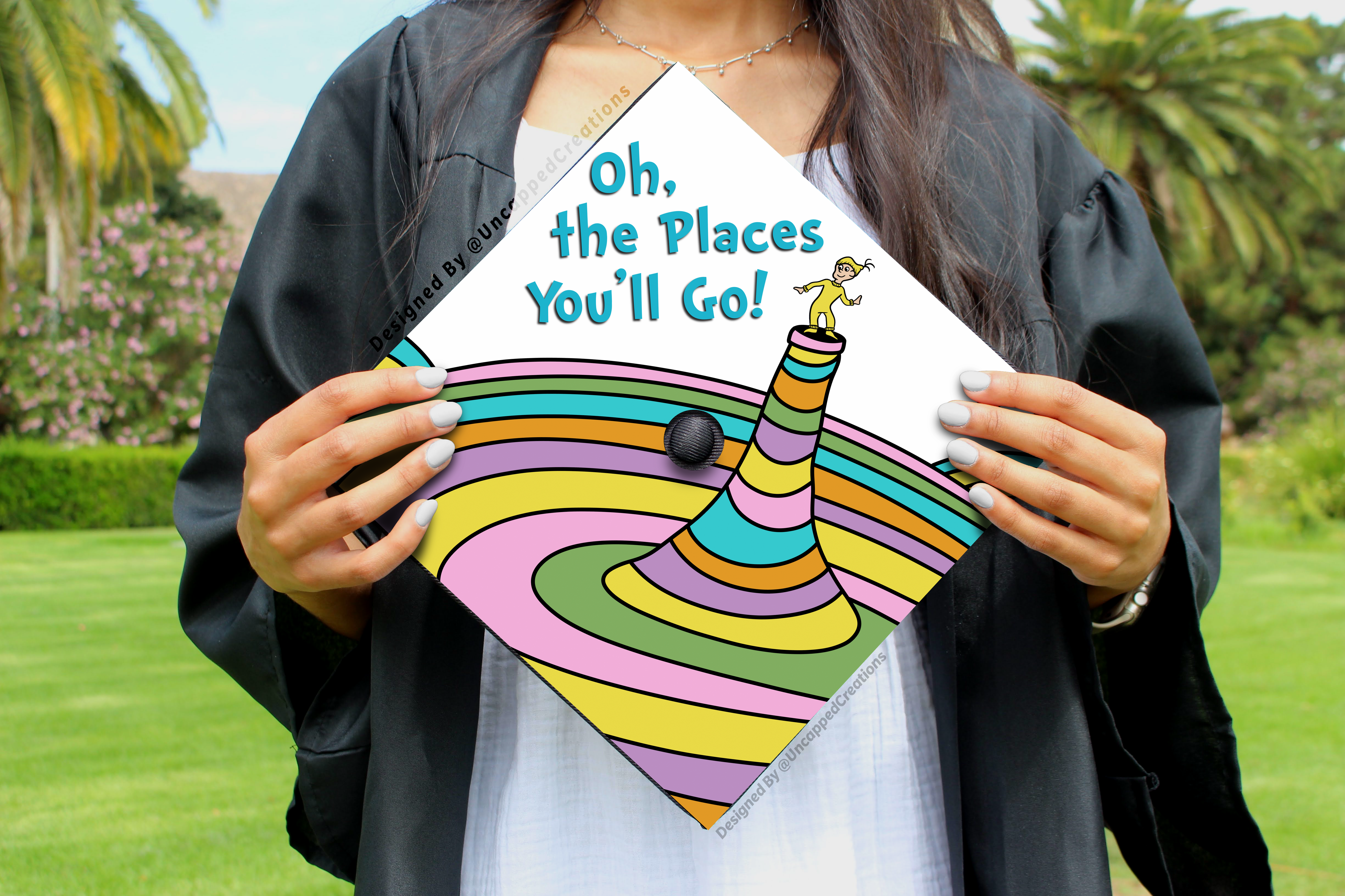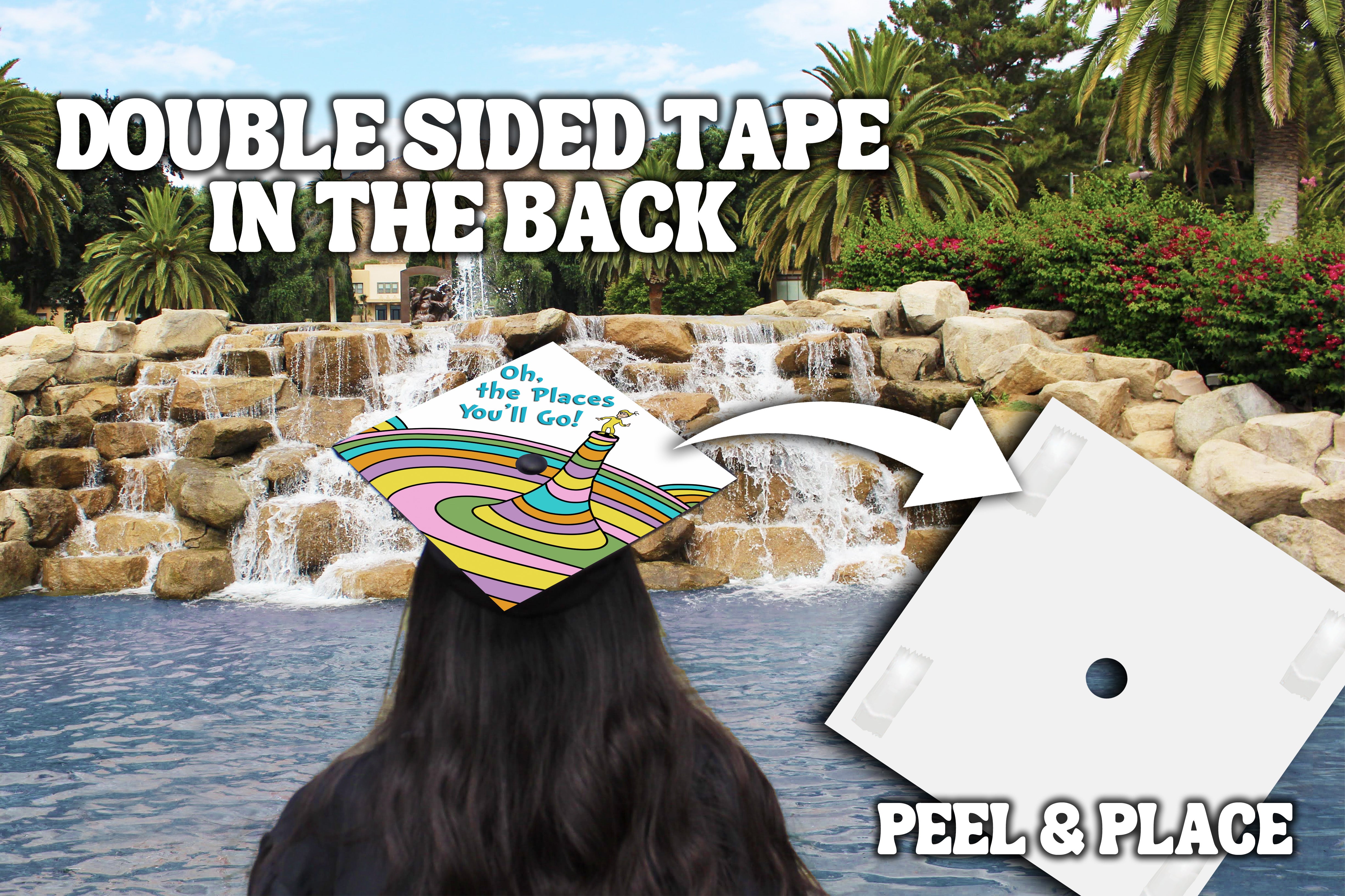 Premade grad cap design is sold AS IS. Design CANNOT be altered, edited, or changed and will be shipped exactly how you see it. Printed design may differ in color slightly in person. Watermarks are only on product photos, actual product will not have a watermark.