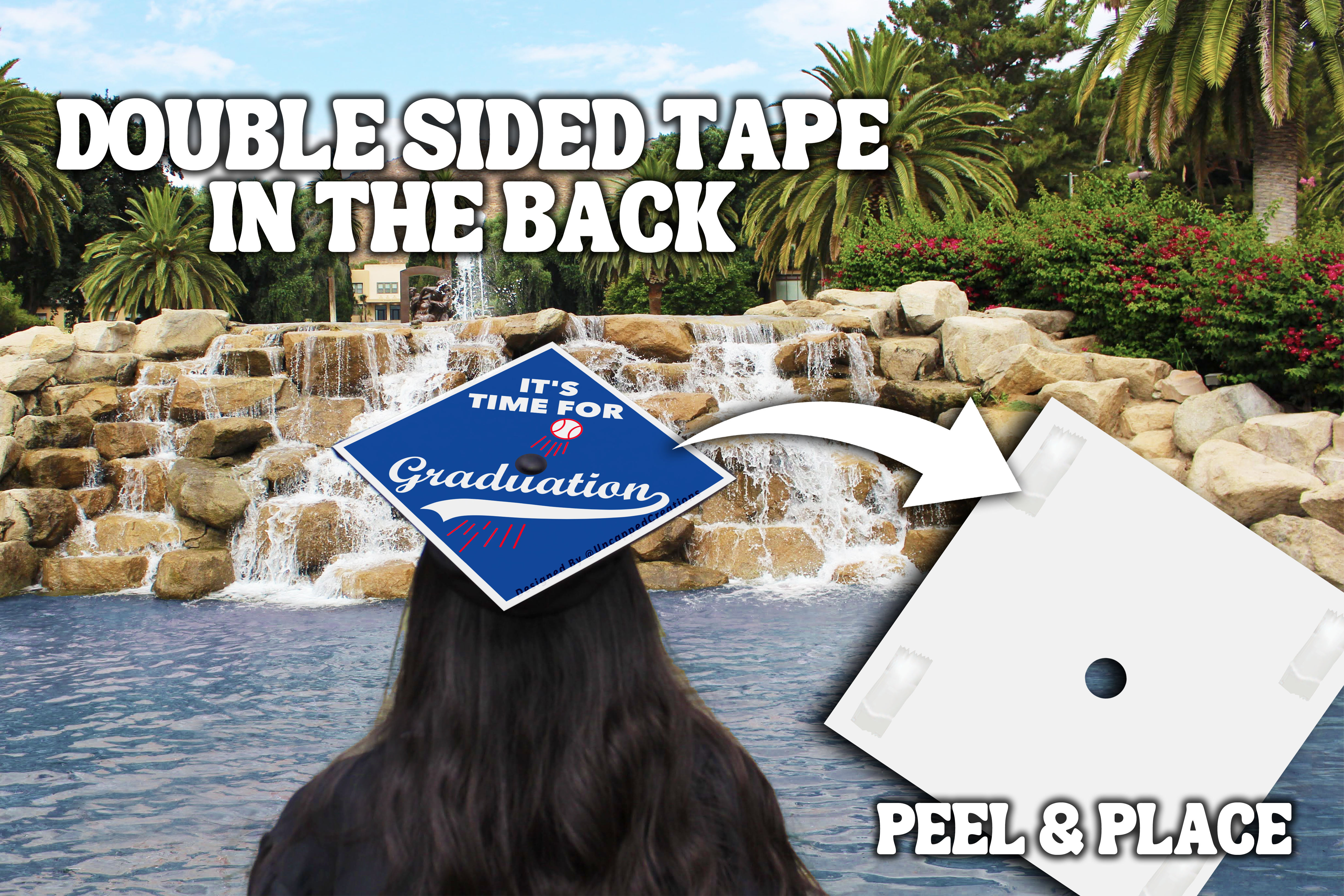 Premade grad cap design is sold AS IS. Design CANNOT be altered, edited, or changed and will be shipped exactly how you see it. Printed design may differ in color slightly in person. Watermarks are only on product photos, actual product will not have a watermark.