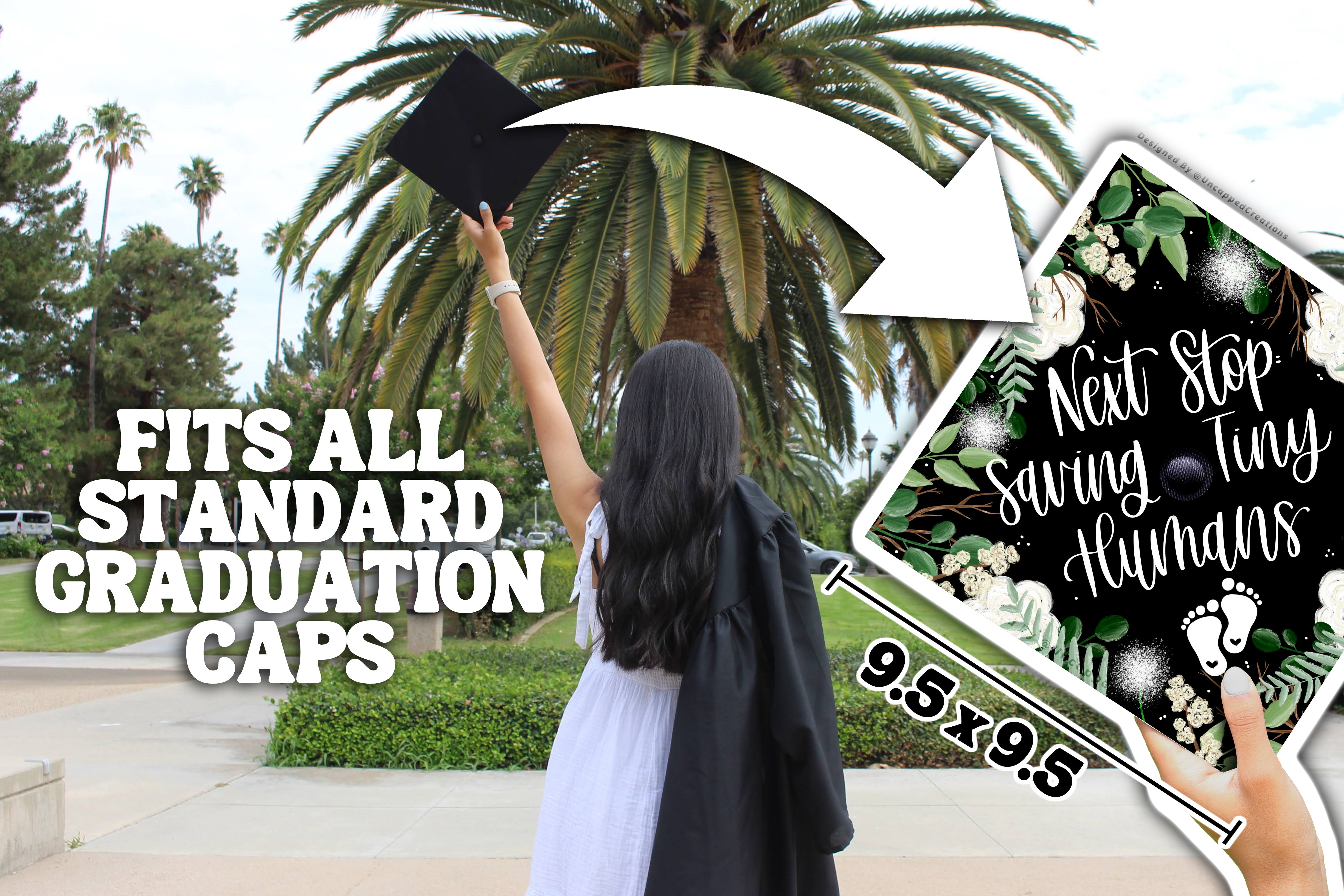 Premade grad cap design is sold AS IS. Design CANNOT be altered, edited, or changed and will be shipped exactly how you see it. Printed design may differ in color slightly in person. Watermarks are only on product photos, actual product will not have a watermark.