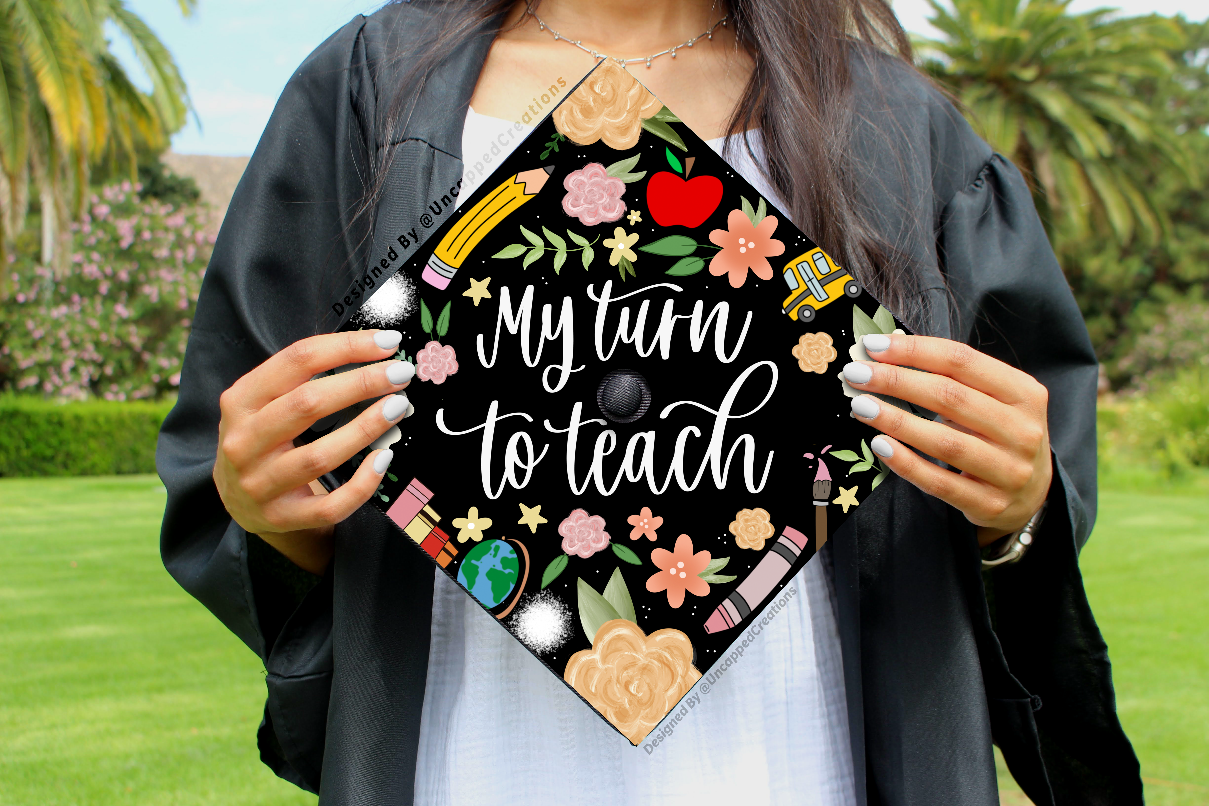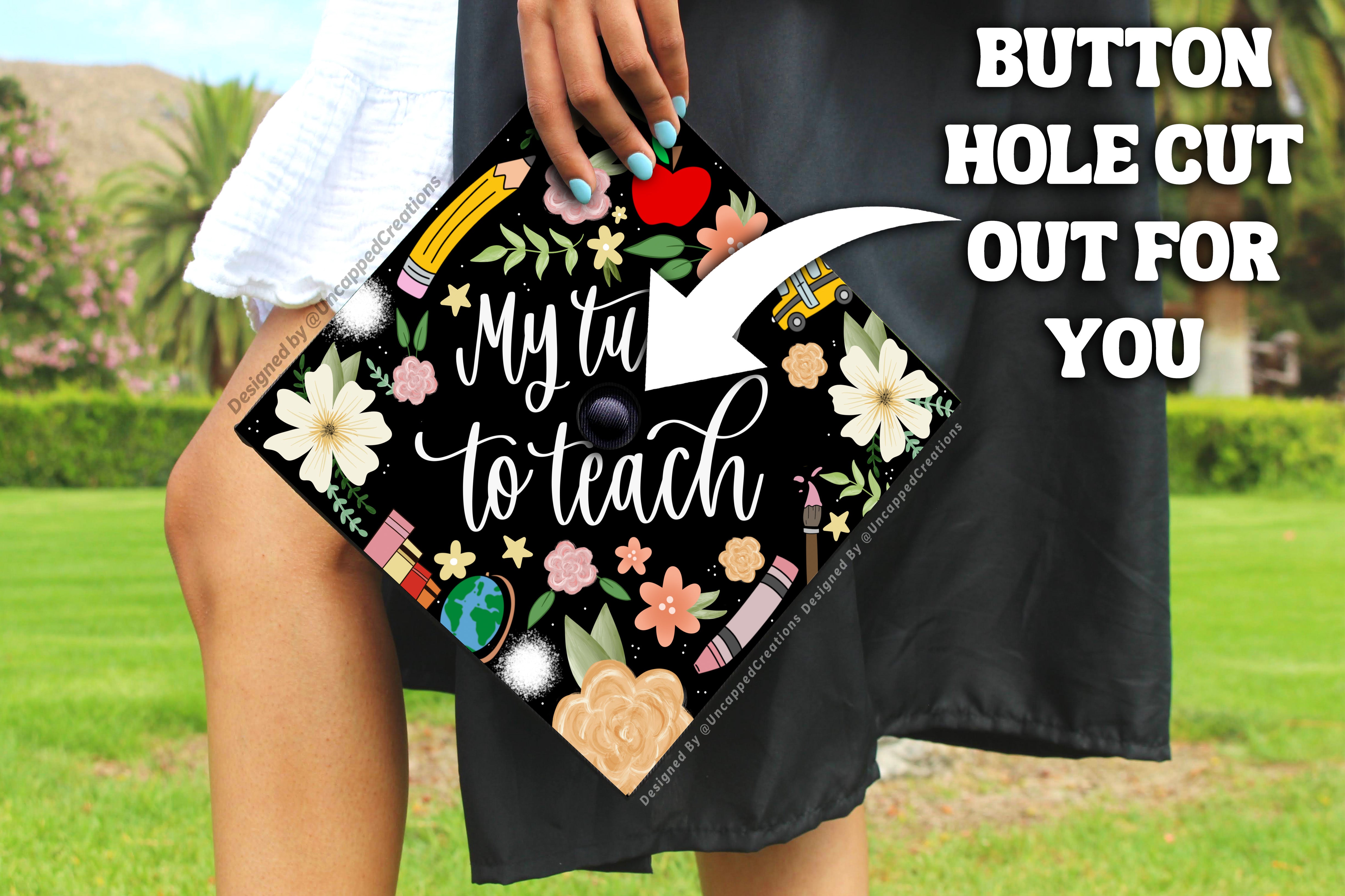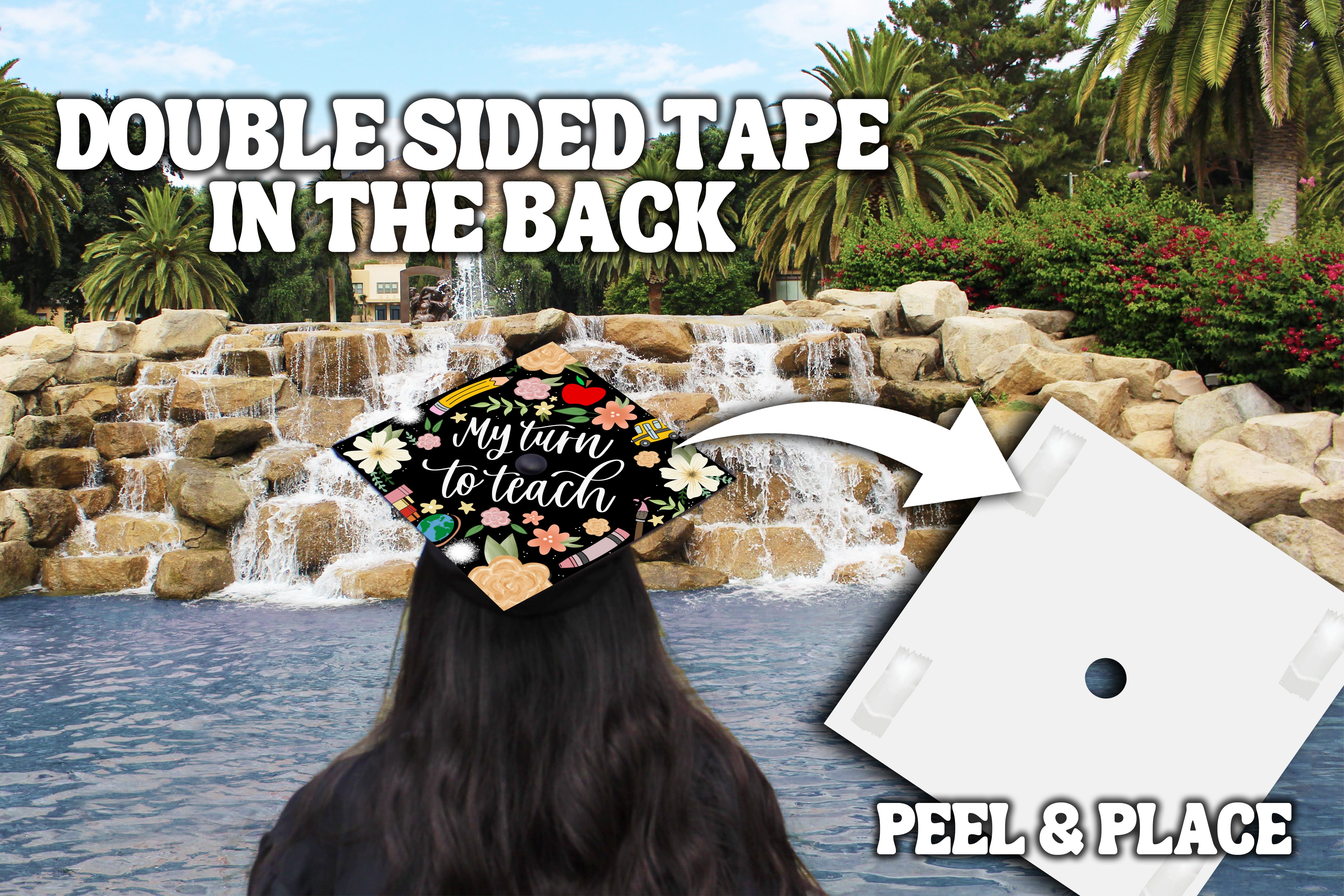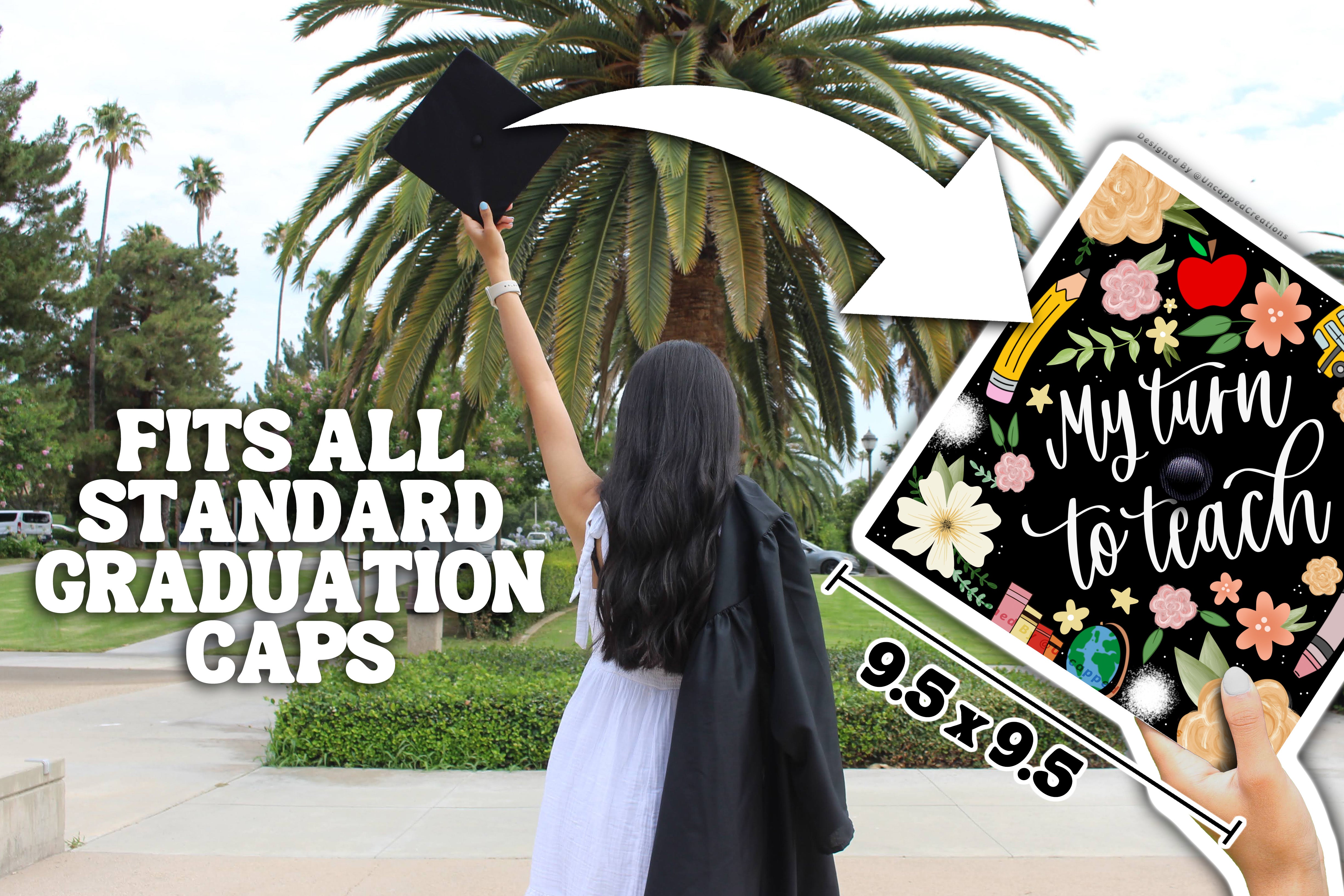 Premade grad cap design is sold AS IS. Design CANNOT be altered, edited, or changed and will be shipped exactly how you see it. Printed design may differ in color slightly in person. Watermarks are only on product photos, actual product will not have a watermark.